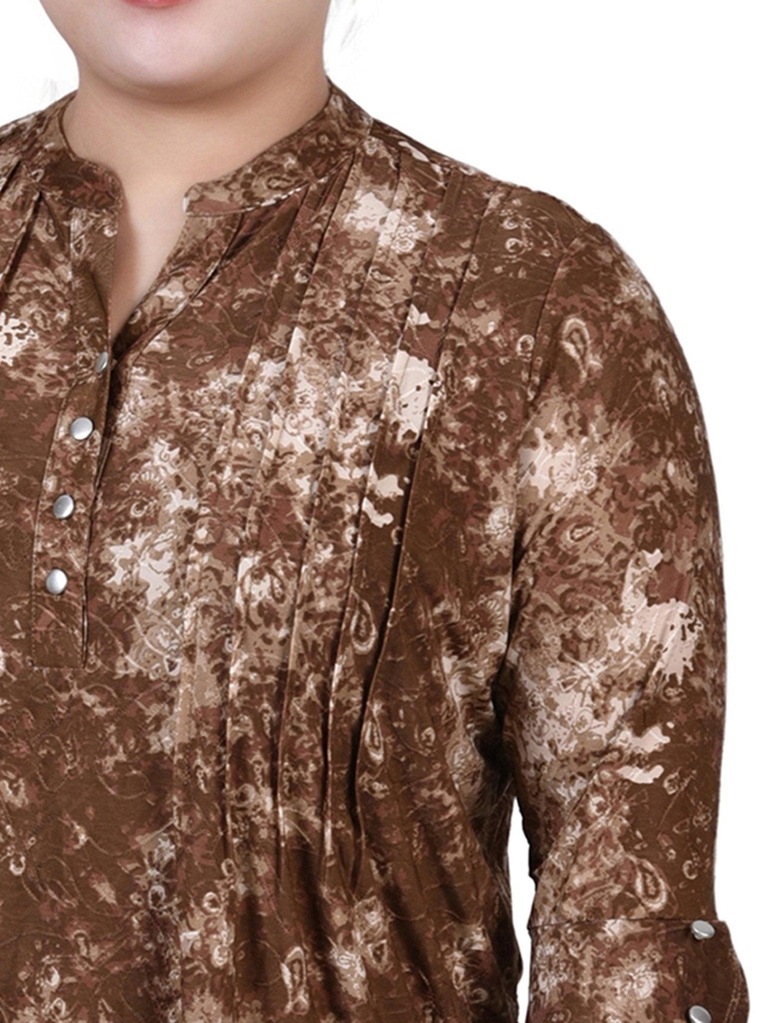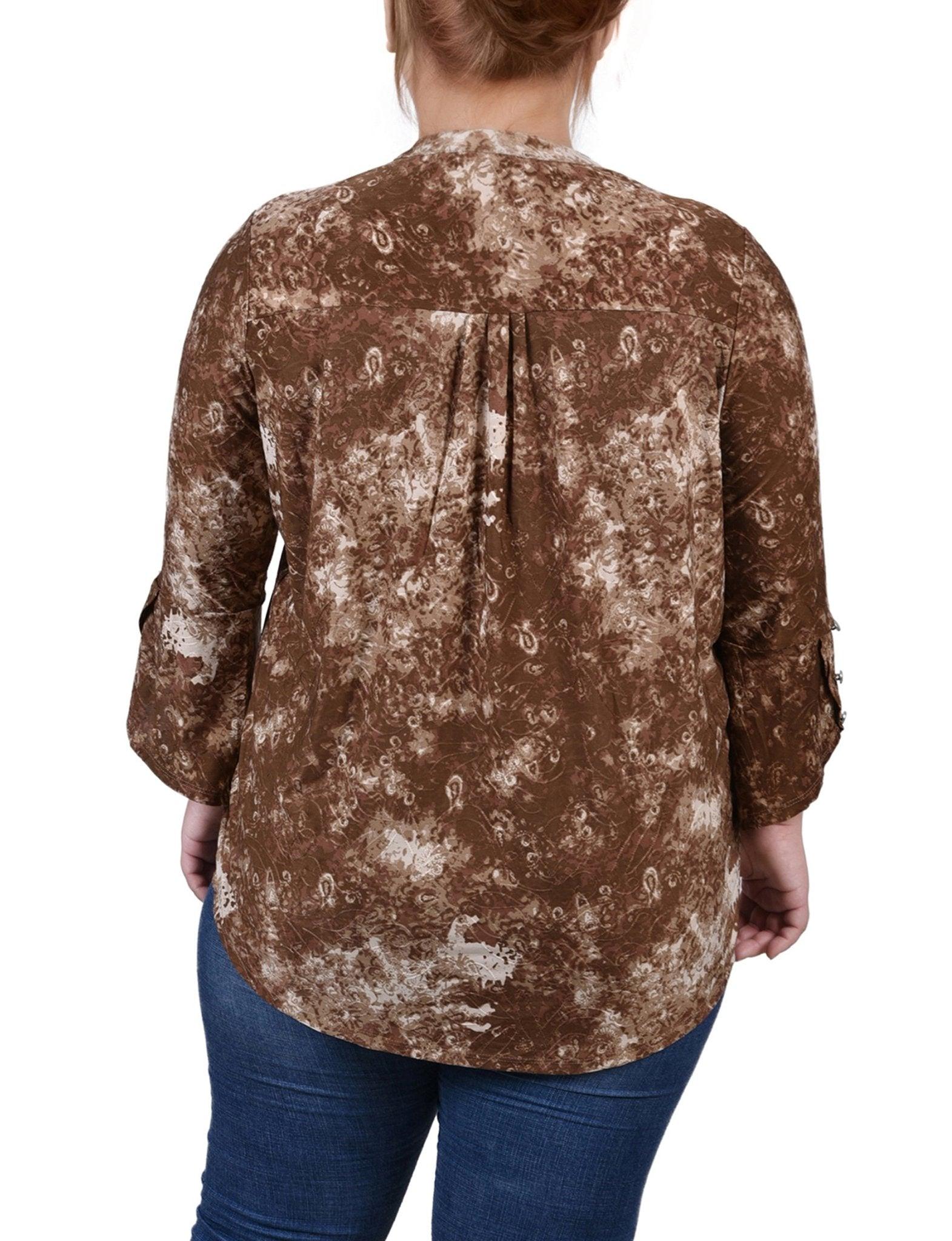 Taupe Geobreeze 3/4 Sleeve Overlapped Bell Sleeve Y Neck Top - Plus