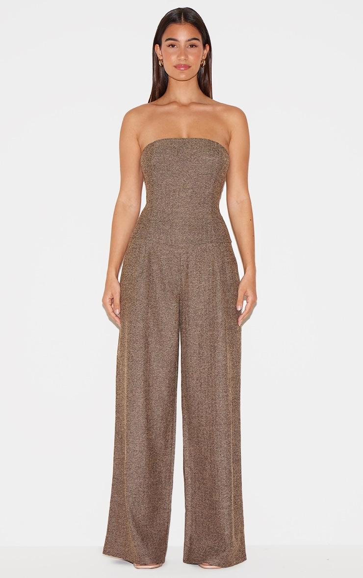 Elevate your event styling with this taupe tailored herringbone bandeau wide leg jumpsuit. Brought to you in a taupe hue herringbone material with a tailored design and bandeau neckline, this wide leg jumpsuit is a must have. Style with slip on heels and simple accessories for a chic finish. Length approx 145cm/57inch (Based on a sample size UK 8) Model wears size UK 8/ EU 36/ AUS 8/ US 4Model Height - 5ft 7inchp]:!mb-0inch>Category: Jumpsuits & PlaysuitsProduct type: Tailored JumpsuitColor: TaupeMaterial: Tailored WovenDesign: PlainNeckline: BandeauSleeves: BandeauOccasion: Evening