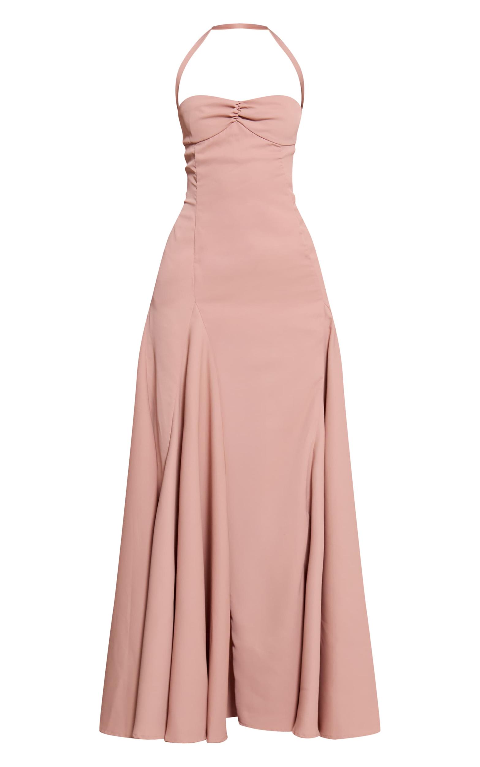 The taupe woven halterneck ruched bust detail maxi dress is your go-to for timeless elegance. Featuring a flattering ruched bust and sleek halterneck, it offers a sophisticated silhouette perfect for formal occasions. Team it with your favorite strappy heels and gold jewelry.Length approx 155cm/61inch (Based on sample size US 4)Model wears size UK 8/ EU 36/ AUS 8/ US 4Model Height - 5ft 9inchp]:!mb-4inch>Category: DressesProduct type: Shift DressColor: TaupeMaterial: Tailored WovenOccasion: Occasion