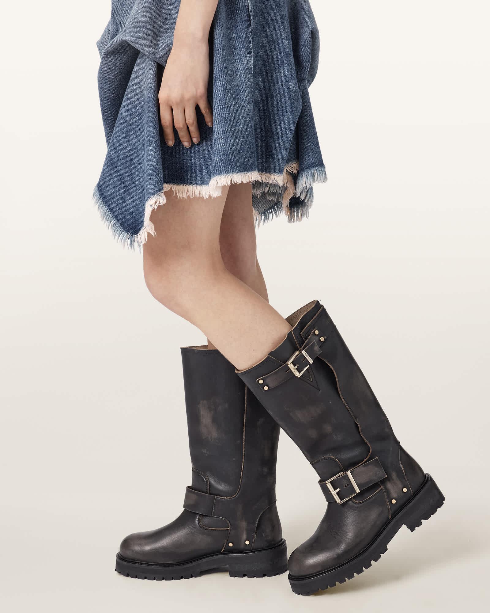 Tay Leather Biker Boots Dark Brown | ALLSAINTS US