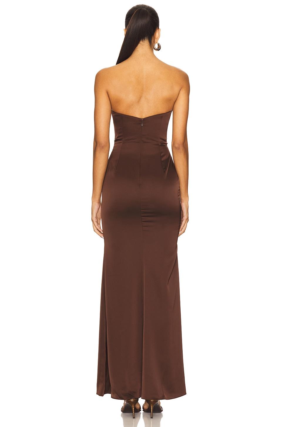 Self & Lining: 100% polyester. Dry clean only. Partially lined at bust. Hidden back zip closure. Boned bodice. Ruched sides. Heavyweight satin fabric. Neckline to hem measures approx 52" in length. Made in US. Revolve Style No. KATR-WD578. Manufacturer Style No. GWCV0616.