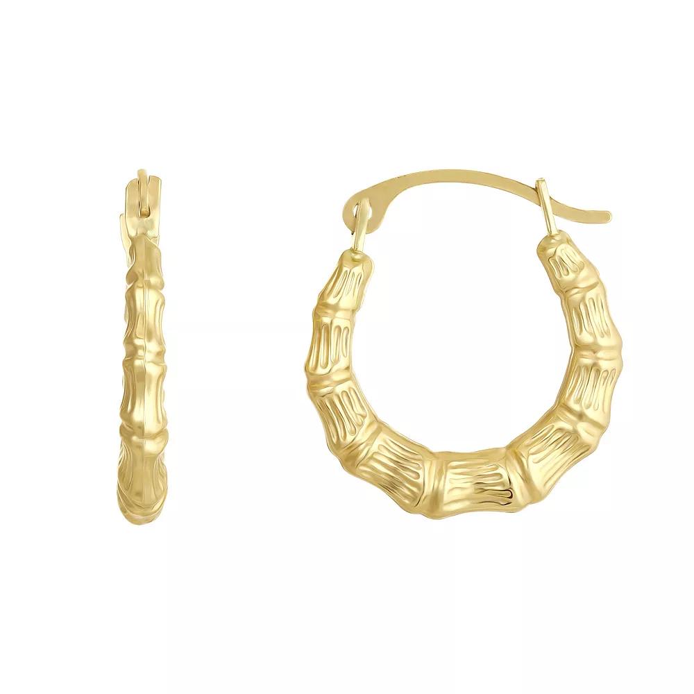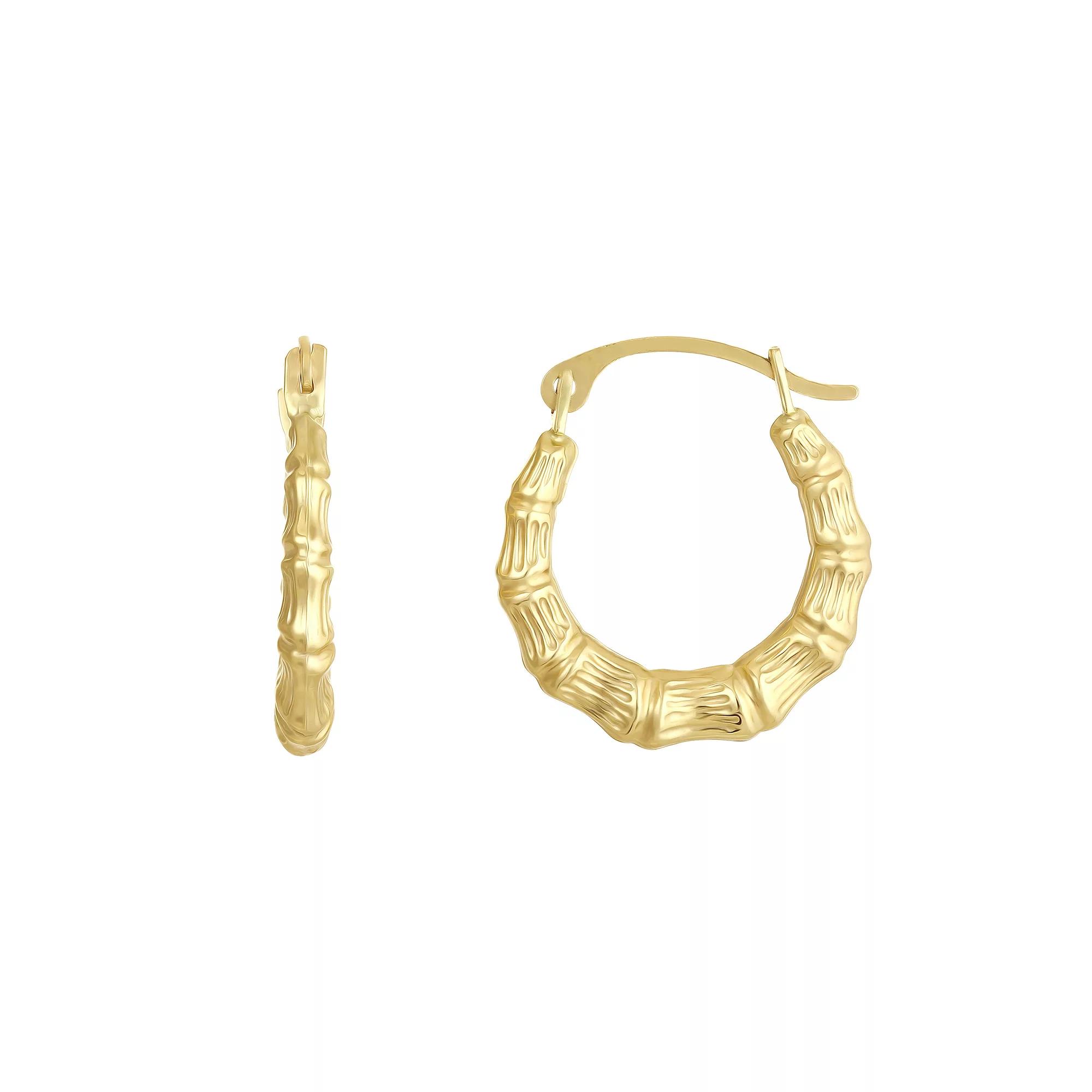 Finish off your look with eye-catching style in these sweet 10k gold Taylor Grace bamboo textured mini hoop earrings. Finish off your look with eye-catching style in these sweet 10k gold Taylor Grace bamboo textured mini hoop earrings. FEATURES Length: 15 mm Backings: click-it Nickel free Metal: 10k gold Finish: textured Packaging: boxed Size: One Size. Color: Yellow. Gender: female. Age Group: adult.