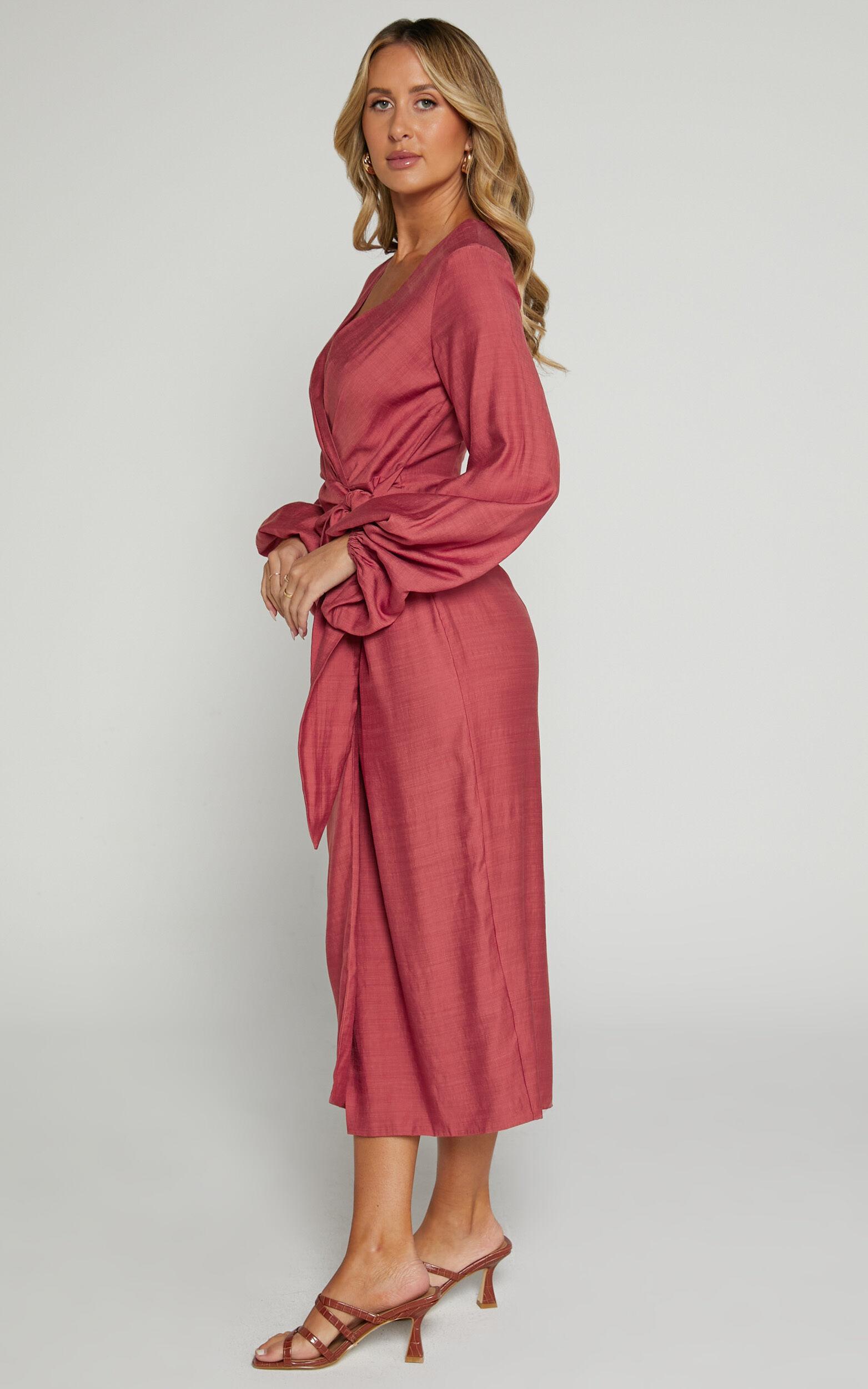 Step up your workwear game with the Taylor Dress - Long Sleeve Wrap Midi Dress in Clay. This trendy brown wrap dress is perfect for the office or a chic day out. Made from high-quality rayon fabric, it offers both comfort and style. The v-neckline adds a touch of femininity, while the midi length keeps it classy. With long sleeves to keep you warm and stylish throughout the day, this dress is a must-have addition to your wardrobe. Pair it with heels and statement accessories for an effortlessly fashionable look.Product Details:Wrap dress in midi lengthMade from rayon fabricV neck necklineLong sleevesPerfect for workwearSuitable for autumn season.Size and FitSize S / 8 length: 86cm / 33.86inMaterial and Care80% Rayon, 20% NylonLow / No stretch