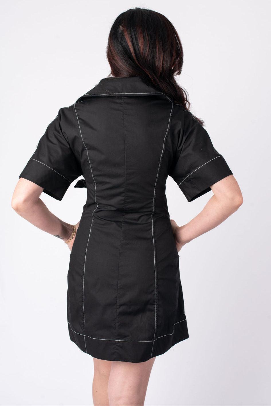 Get ready to turn heads with the Taylor Wrap Dress! With its stunning v-neck and collared design, this black wrap dress is the perfect mix of sophistication and style. The adjustable tie adds a touch of uniqueness, featuring visible white stitching for a quirky twist. Make a statement with this gorgeous dress!