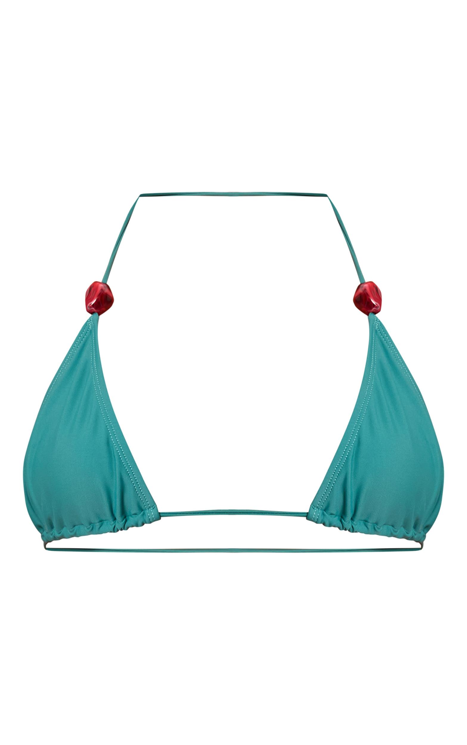 Be the best dress in this teal bead trim triangle bikini top. Brought to you in a teal hue material with a bead trim, tie fastenings and a triangle design. Team this bikini top with the matching bikini bottoms and a pair of statement earrings to turn heads for a chic finish.Length approx 28cm/11inch (Based on sample size US 4)Model wears size UK 8/ EU 36/ AUS 8/ US 4Model Height - 5ft 7inchp]:!mb-4inch>Brand: PrettyLittleThingCategory: SwimwearProduct type: Triangle Bikini TopColor: TealMaterial: SwimDesign: PlainOccasion: Day