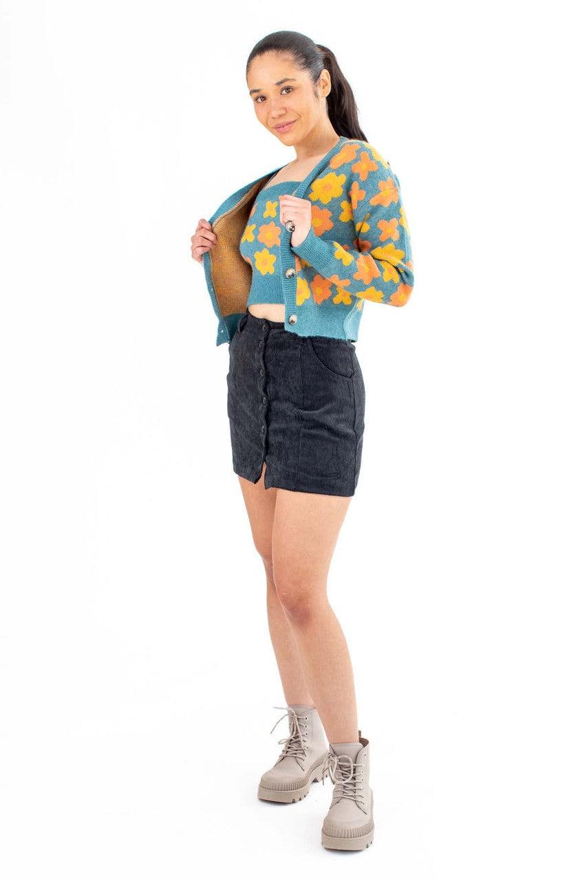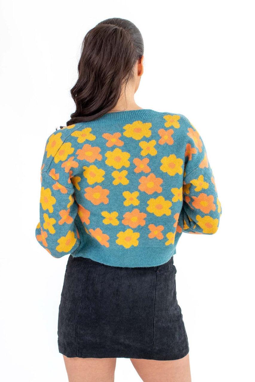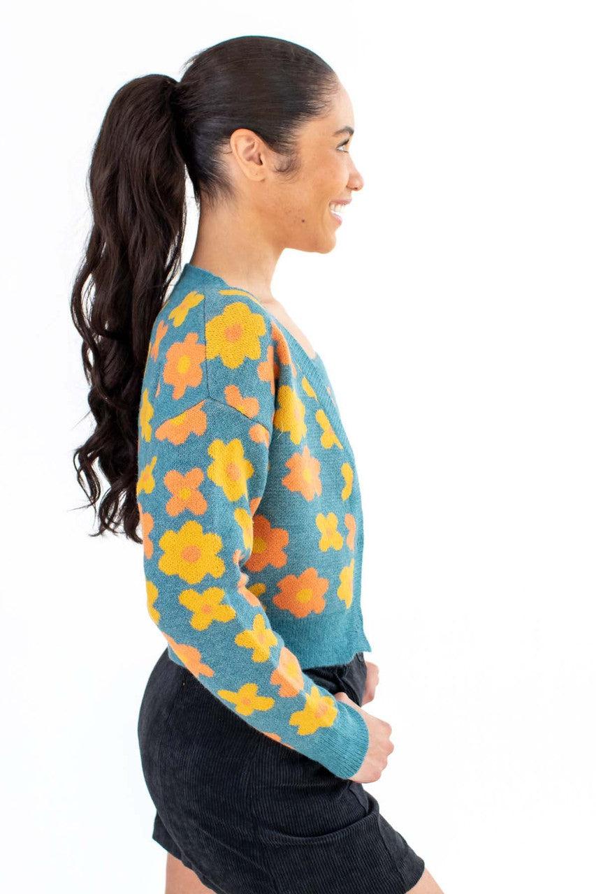 Teal Daisy Print Cardigan