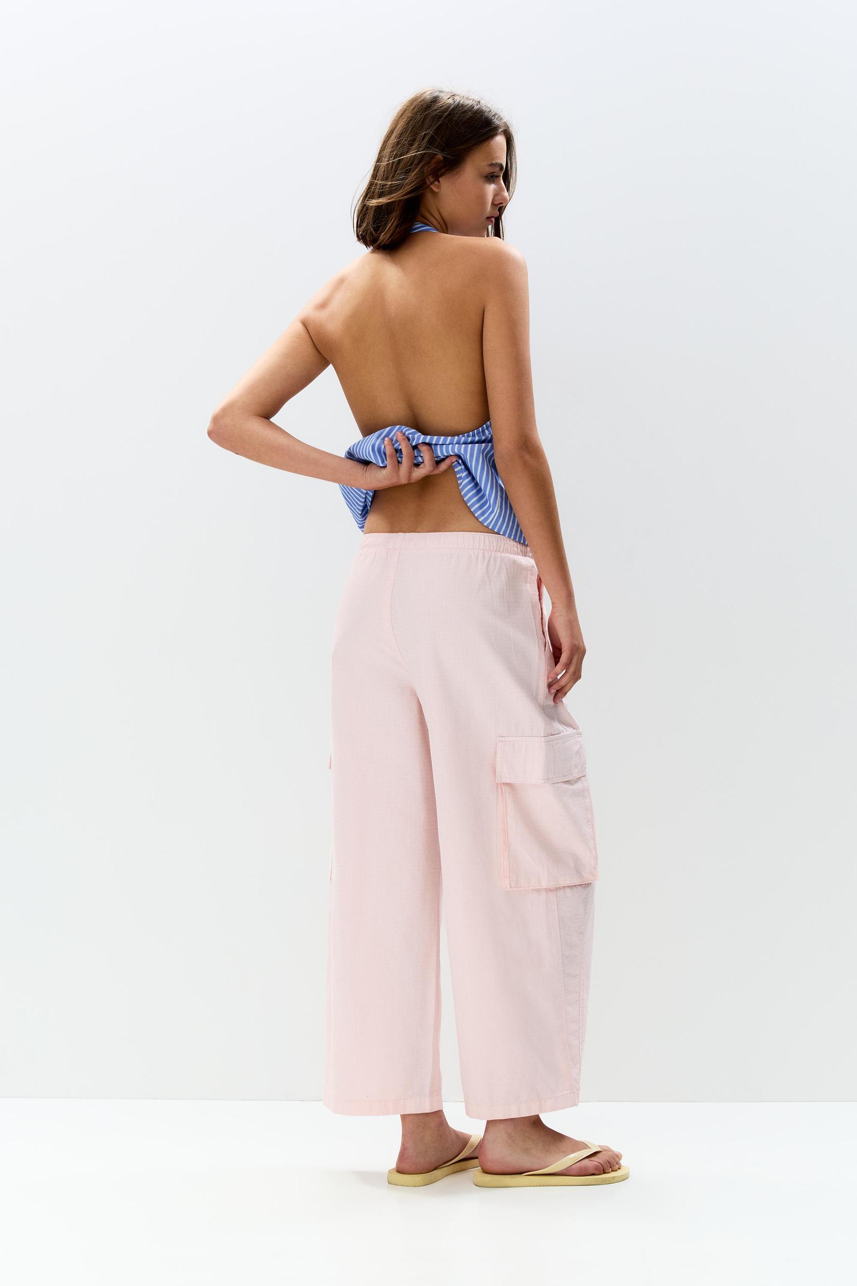 Balloon fit cargo pants in technical fabric with flap pockets on the leg and an elastic drawstring waistband. Made of cotton.