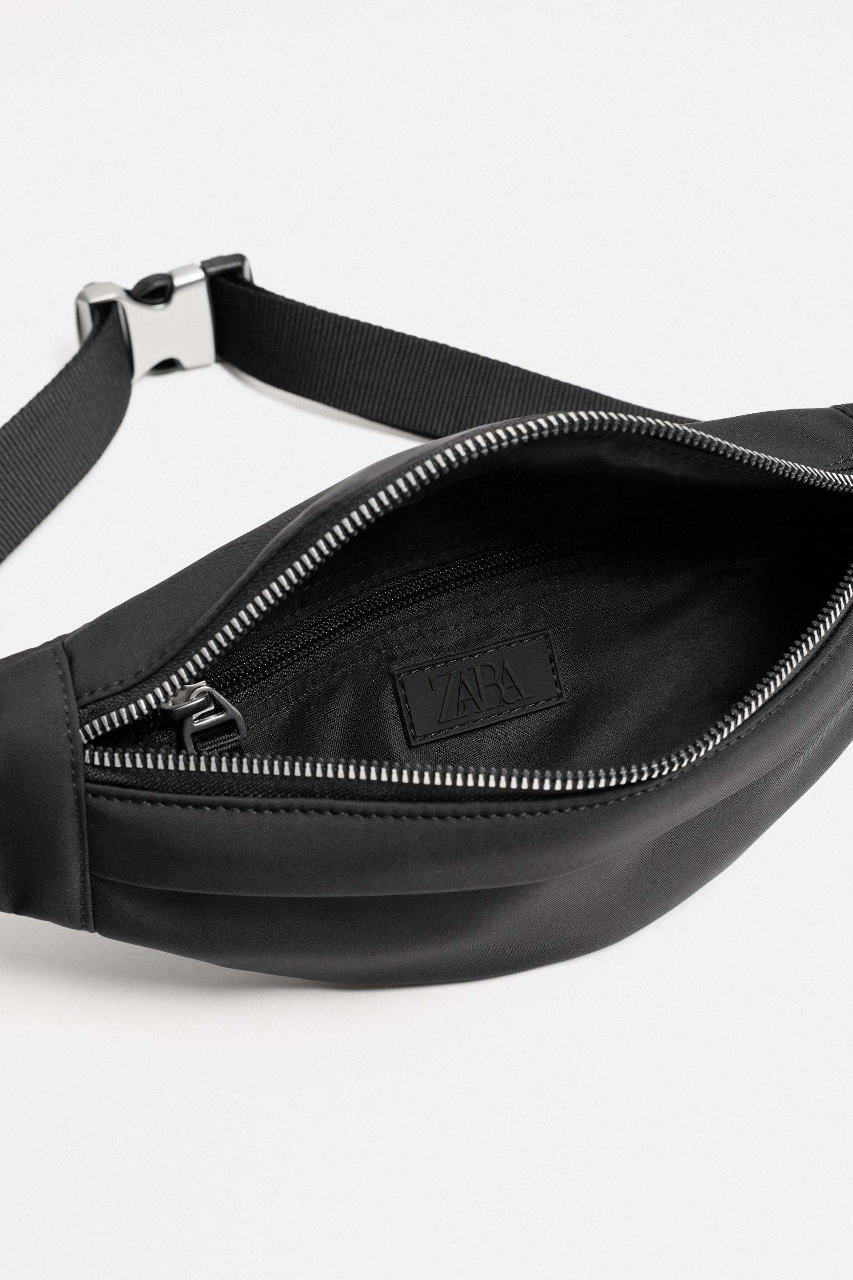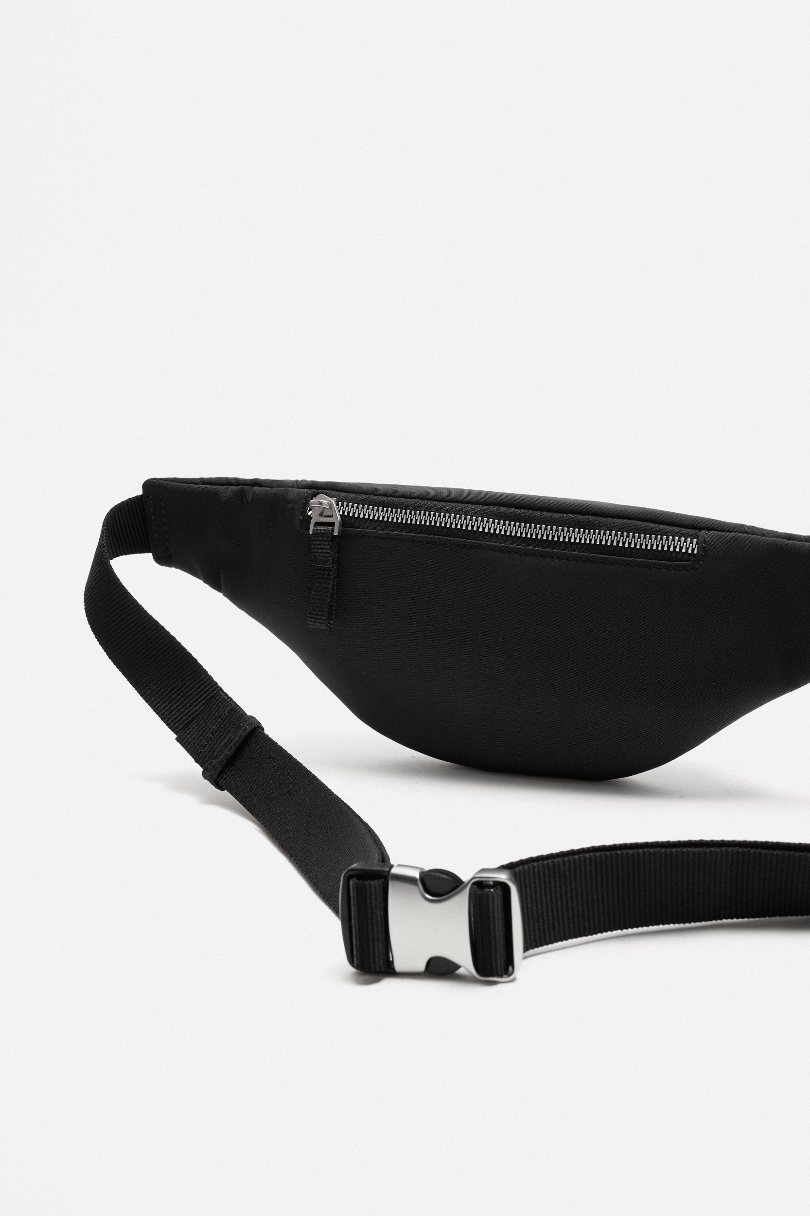 Belt bag made of technical fabric. Main compartment with zipper closure. Interior pocket with zipper closure. Front pocket with zipper closure. Back pocket with zipper closure. Adjustable strap with metal quick-release buckle.