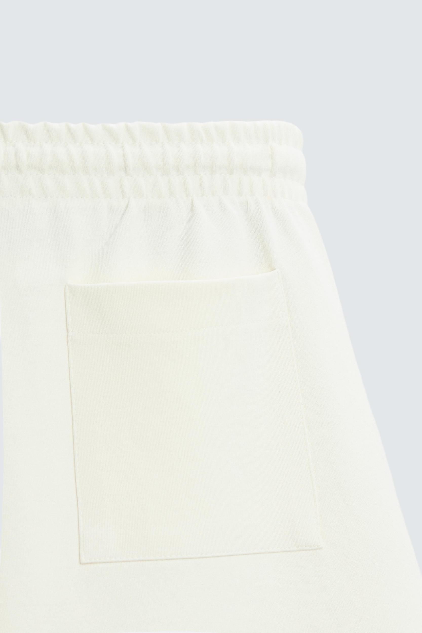 Relaxed fit shorts made of stretch cotton interlock fabric. Adjustable elastic drawstring waistband. Side pockets and back patch pocket detail.