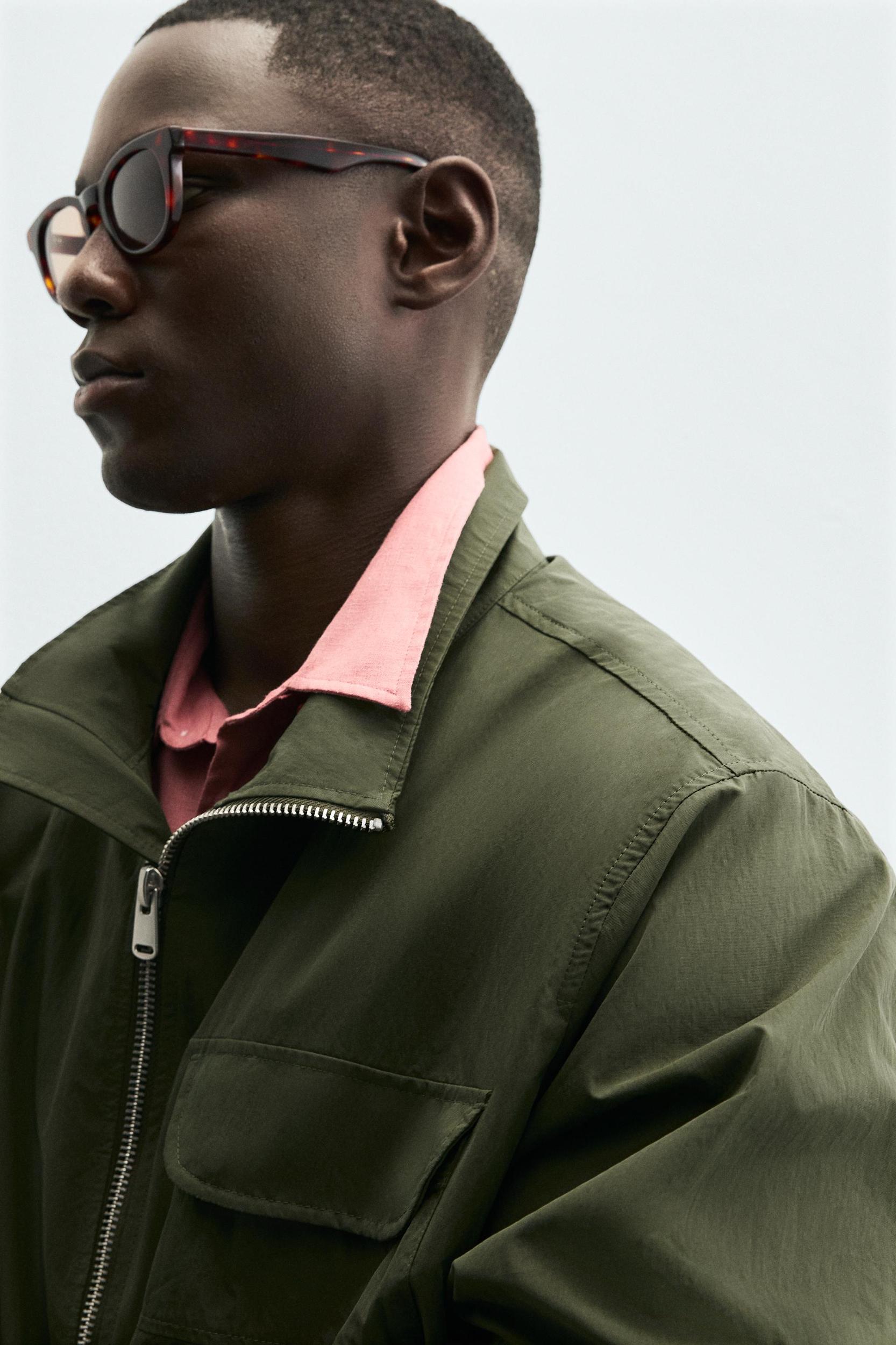Regular fit parka made in lightweight technical fabric. High collar and long sleeves finished in adjustable cuffs. Front patch pockets with flaps. Front button closure.
