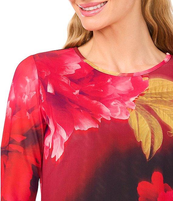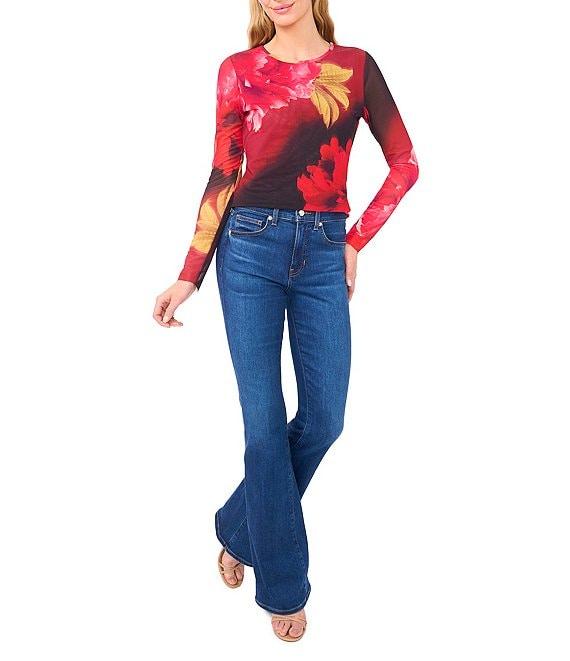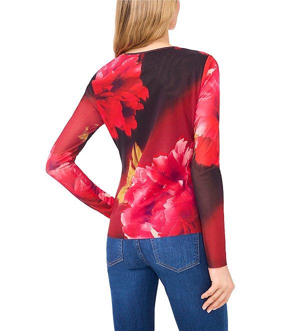 Ted Baker London Floral Mesh Crew Neck Long Sleeve Top