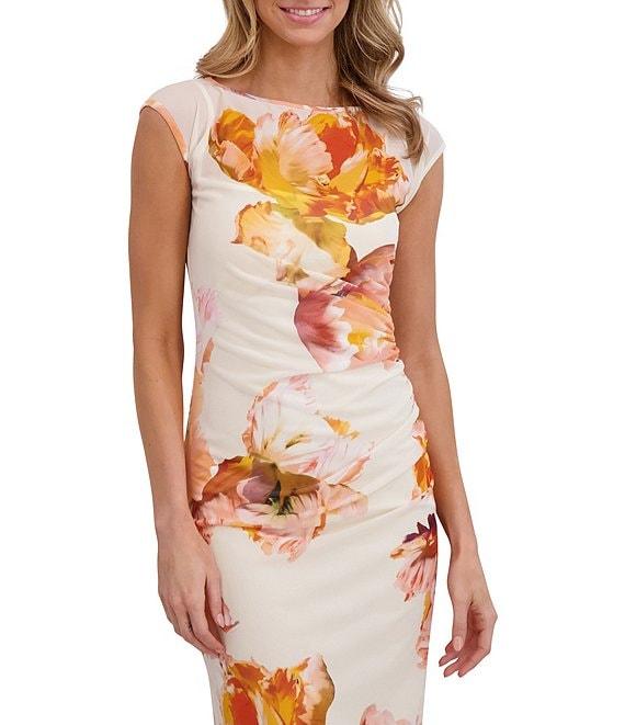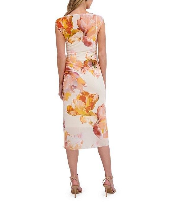 Ted Baker London Floral Mesh Round Neck Cap Sleeve Midi Dress