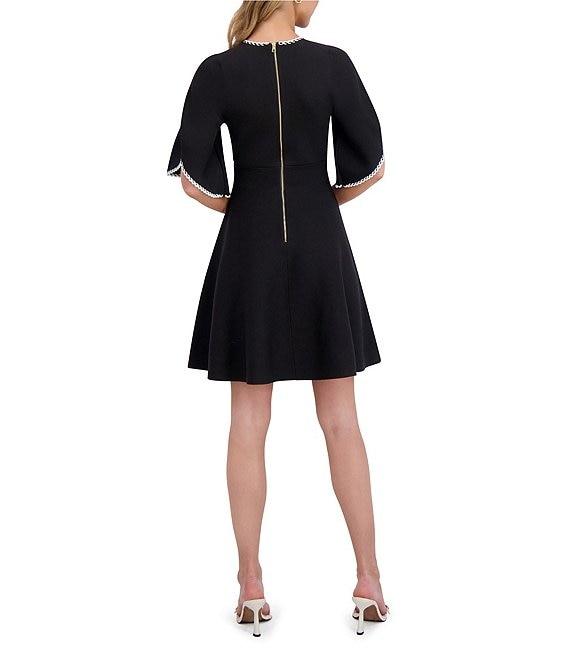 Ted Baker London Knit Crew Neck Elbow Tulip Sleeve Fit-And-Flare Embroidered Trim Dress