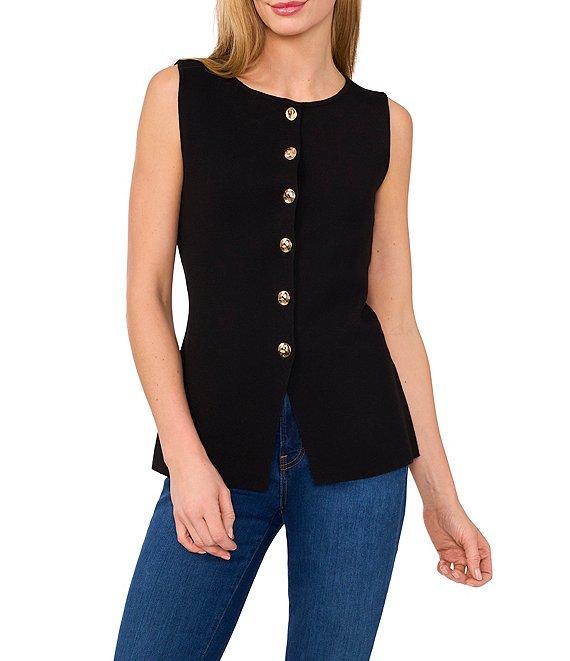Ted Baker London Knit Crew Neck Sleeveless Button Front Top