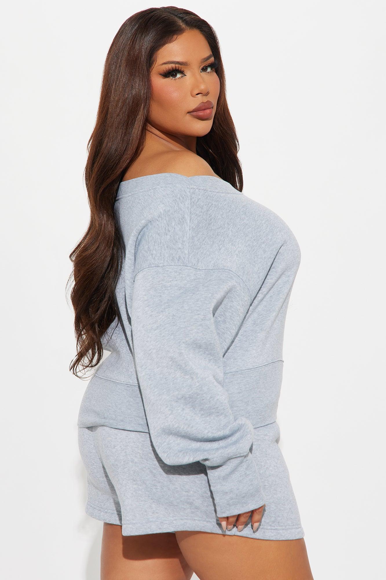 Teddy Sports Club Off Shoulder Sweatshirt - Heather Grey