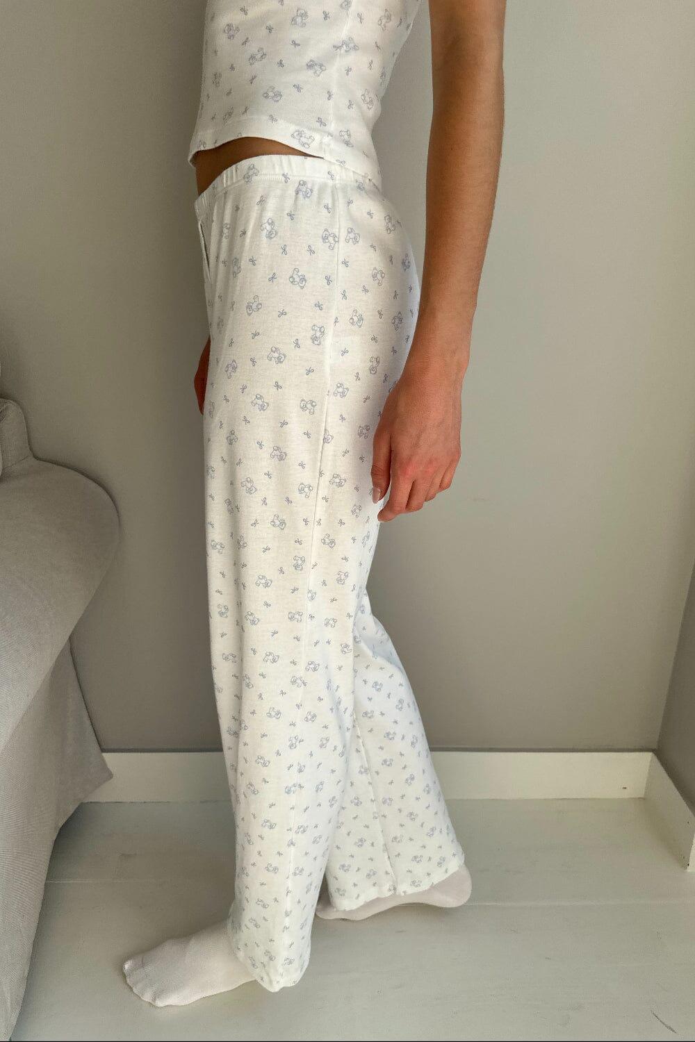 Cozy light weight low rise pajama pants in ivory with teddy bear and bow pattern. Fabrics: 100% cotton Measurement: 11" (28 cm) rise, 28" (71 cm) inseam, 26" (66 cm) waist (stretches) Made in: Italy