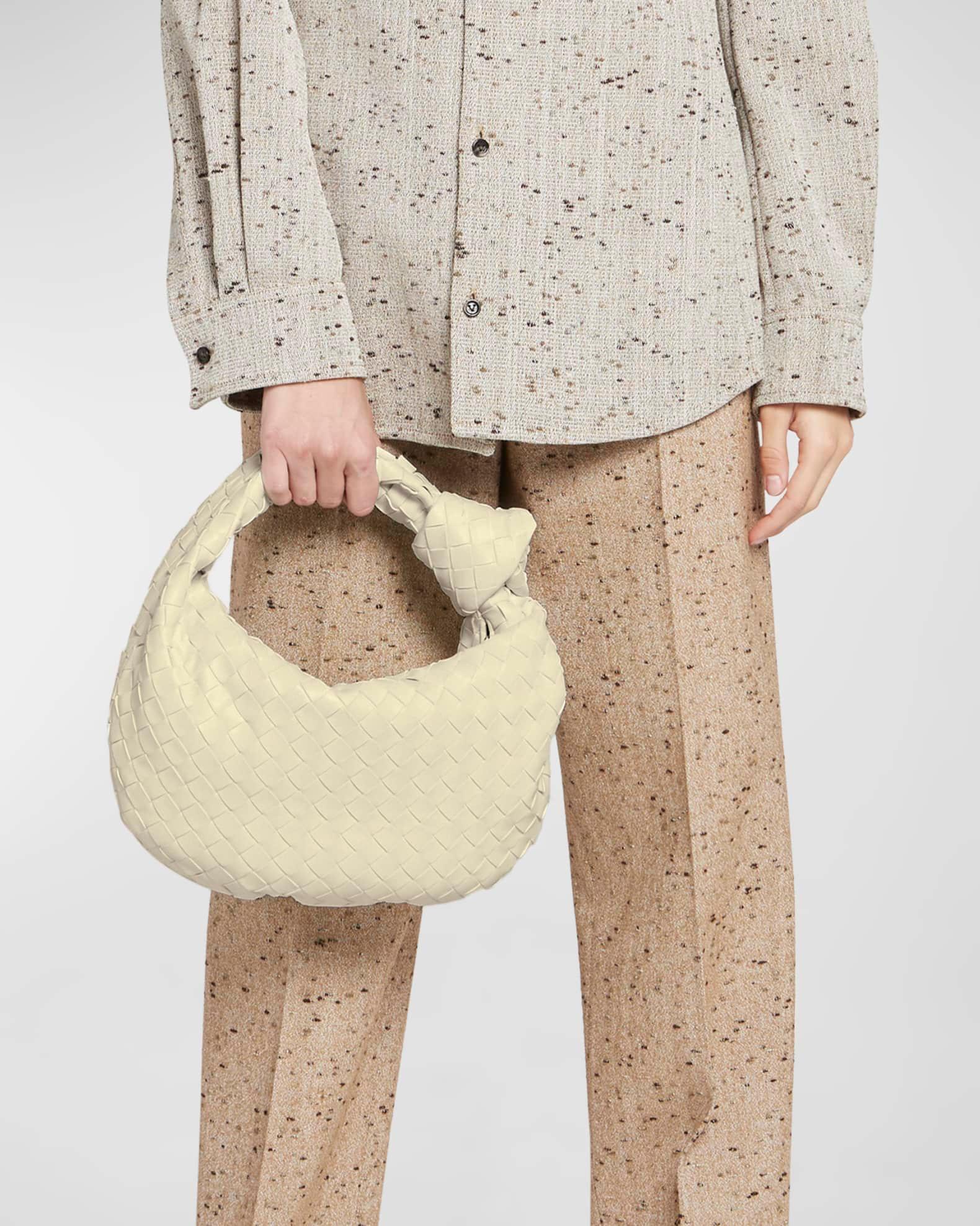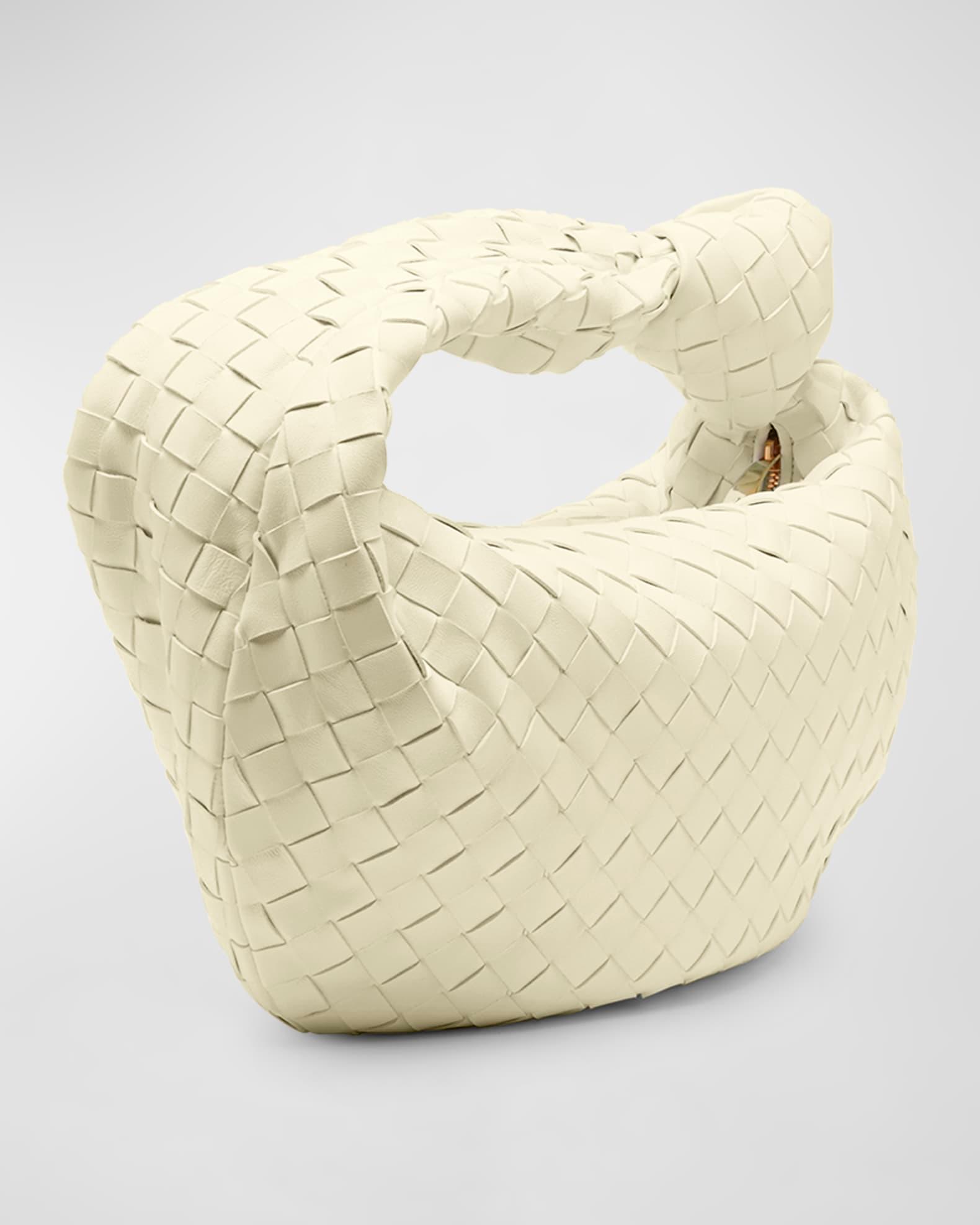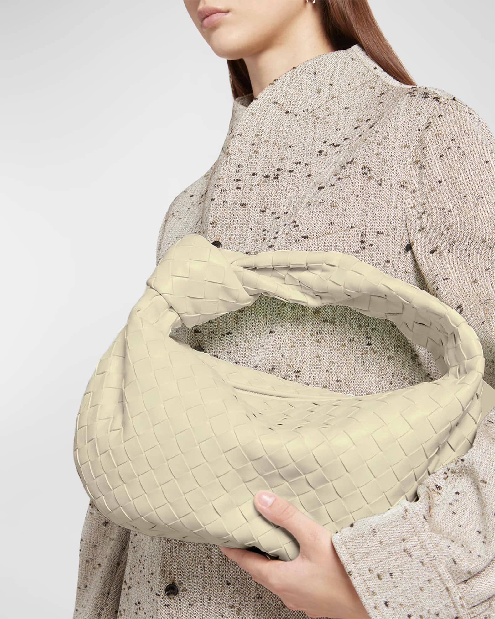Bottega Veneta shoulder bag in signature intrecciato lambskin leather Integrated flat shoulder handle with knot accent; 18cm / 7.1" drop Can be worn on the shoulder or as a handbag Zip top closure Interior, one zip pocket Approx. 5.1"H x 14.2"W x 8.3"D Approx. weight: 1.1 lb "Jodie Teen" is made in Italy