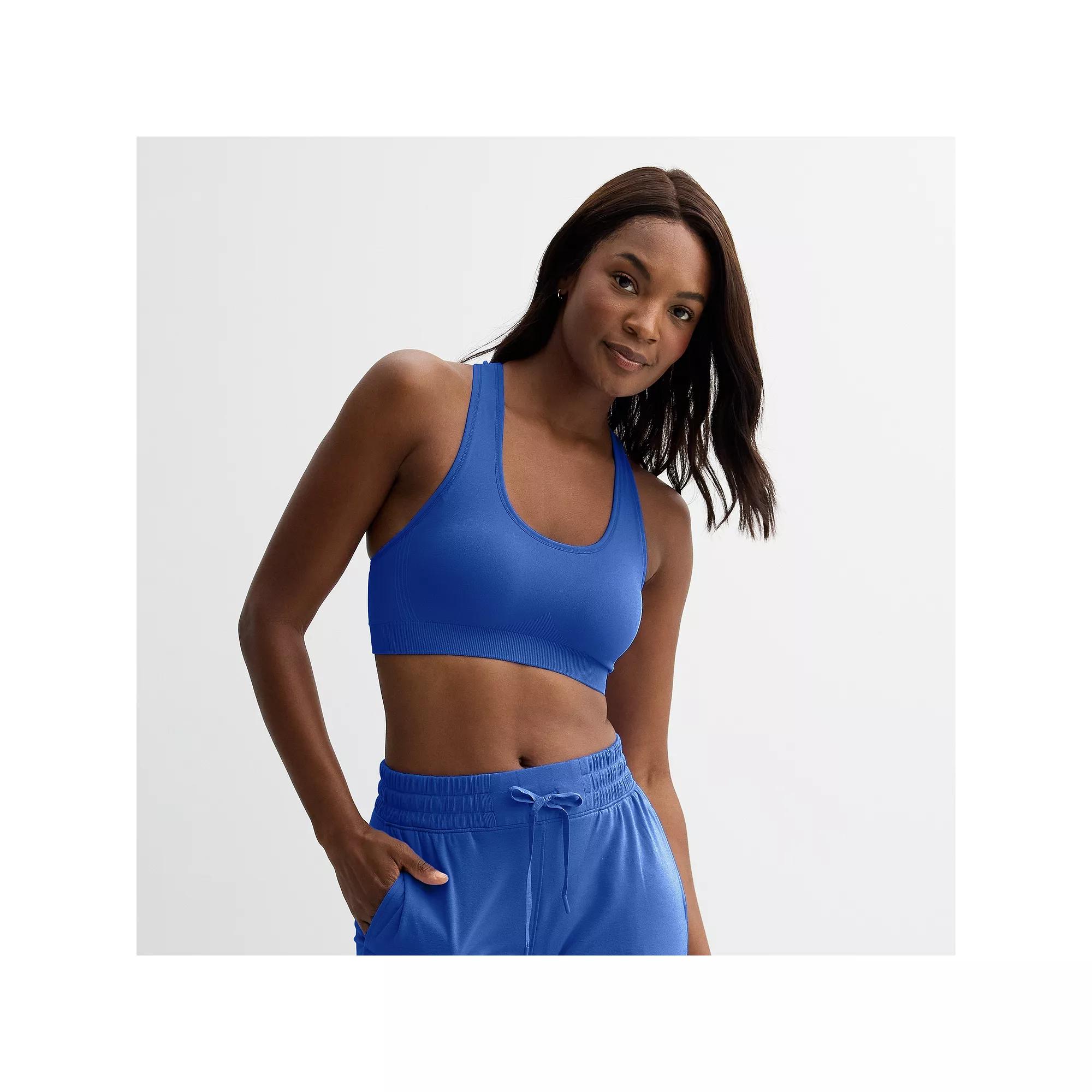 Tackle your next workout with confidence in this seamless sports bra from Tek Gear. Tackle your next workout with confidence in this seamless sports bra from Tek Gear. Perfect for low-impact activities Moisture-wicking technology Jersey construction Tag free ScoopneckFIT & SIZING Removable bra cups Wire freeFABRIC & CARE Nylon, spandex, polyester Machine wash Imported Size: X Large. Color: Tara Blue. Gender: female. Age Group: adult.