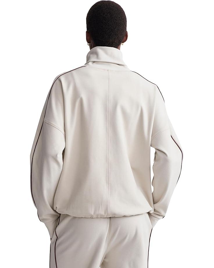 Made from brushed rib fabric to a relaxed fit, this Varley Ariana High Neck Midlayer is elevated by a chic roll neckline and an adjustable drawcord hem. Dropped shoulders add to its effortless appeal, while paneling and contrast piping infuse an Alpine edge.