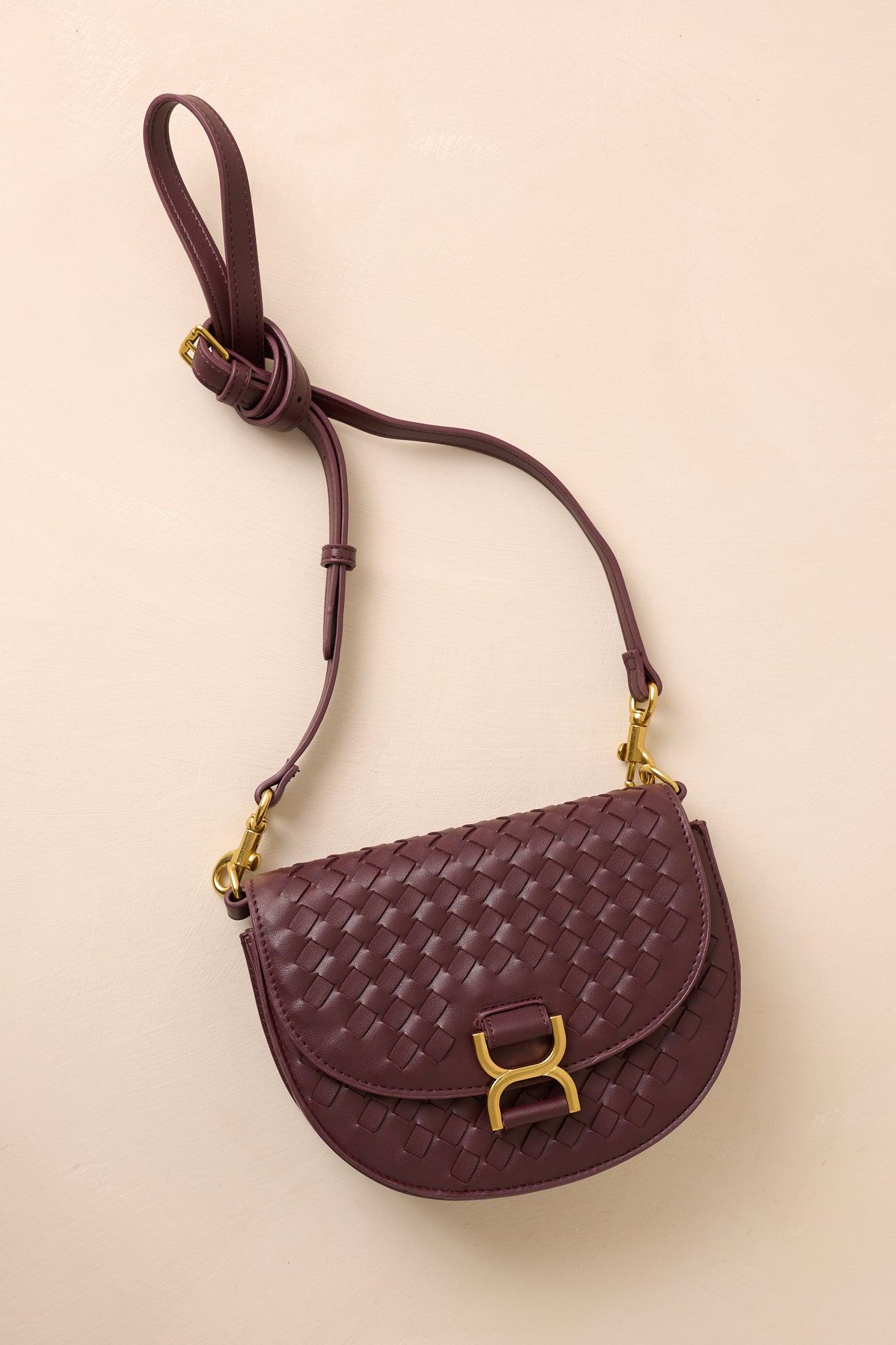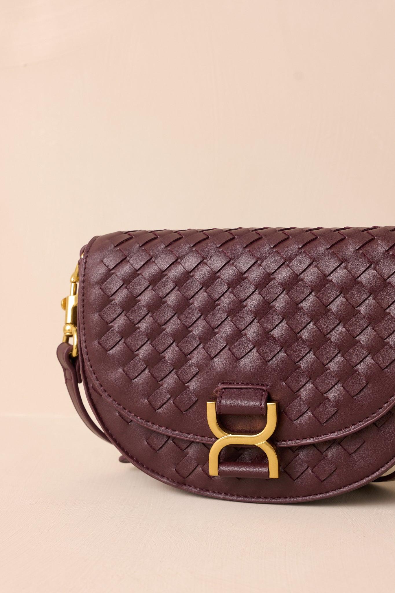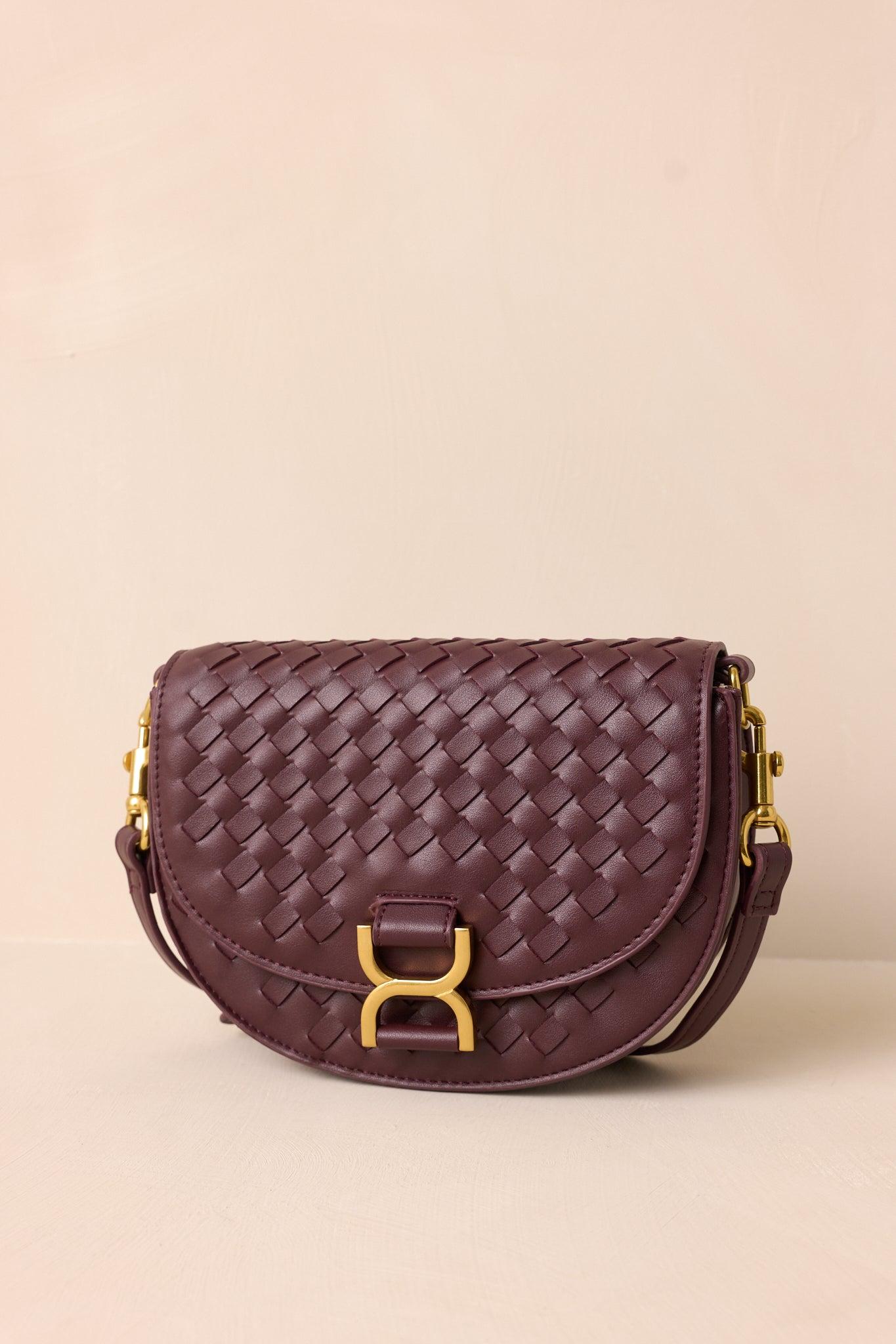 Elevate your style with Tempest's Call Burgundy Woven Faux Leather Handbag. This sleek and stylish handbag features a woven design and faux leather material for a sophisticated look. The spacious interior and multiple pockets provide ample storage for all your essentials, making it the perfect accessory for any occasion. This burgundy handbag features a burgundy woven faux leather material, gold hardware, a gold buckle snap closure, a fold over design, a built in inside pouch, a solid burgundy shoulder strap mimicking a belt and an optional clutch design. Bag Measures: 8.75" In Length, 6.25" in Height & 2.5" in Width 100% Polyurethane Manufactured in China