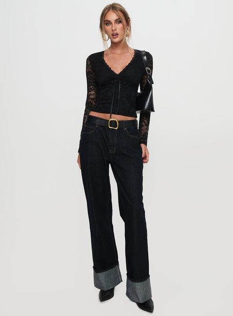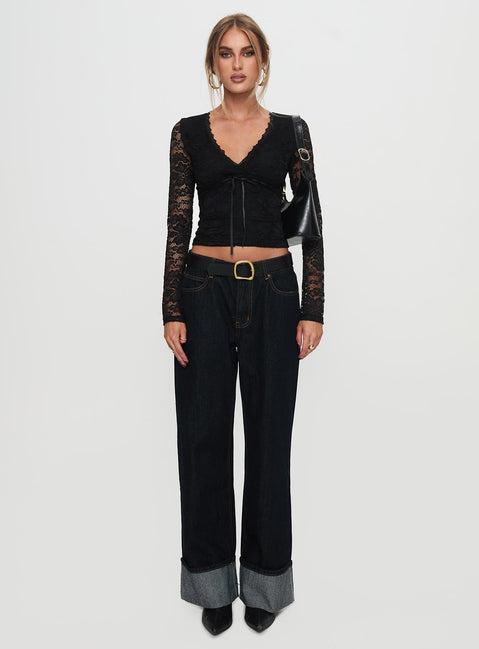Temptation Incoming Long Sleeve Lace Top Black
