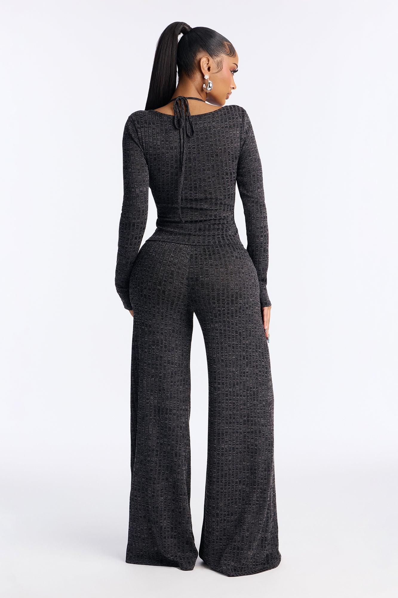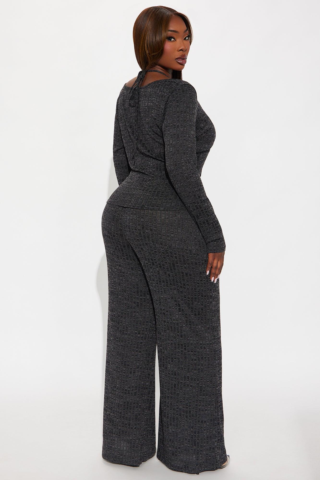 Tempting Fate Lace Bra Ribbed Pant Set - Charcoal Female