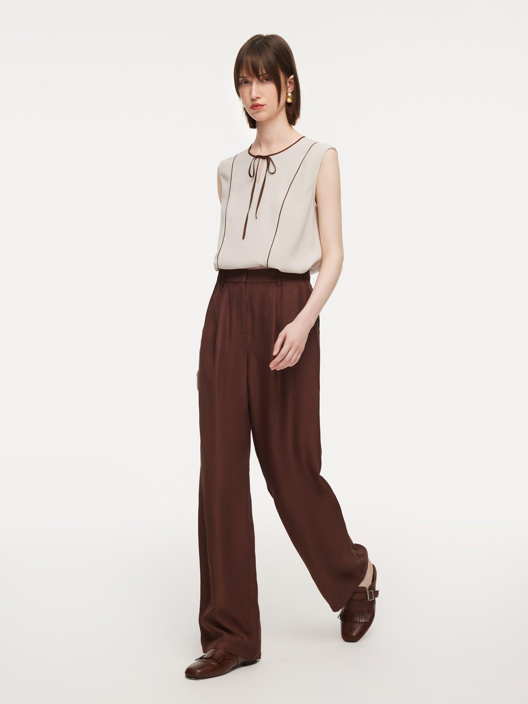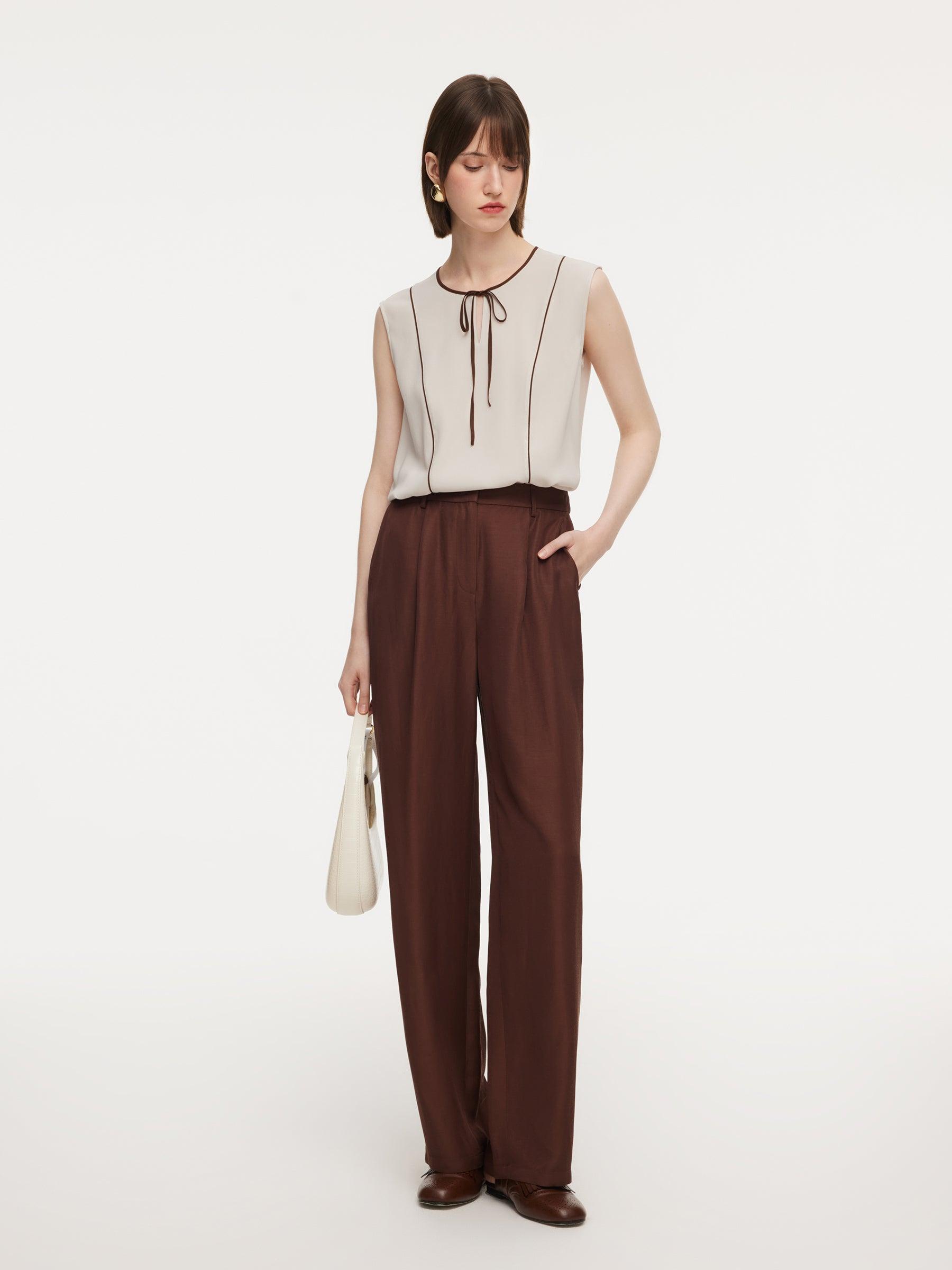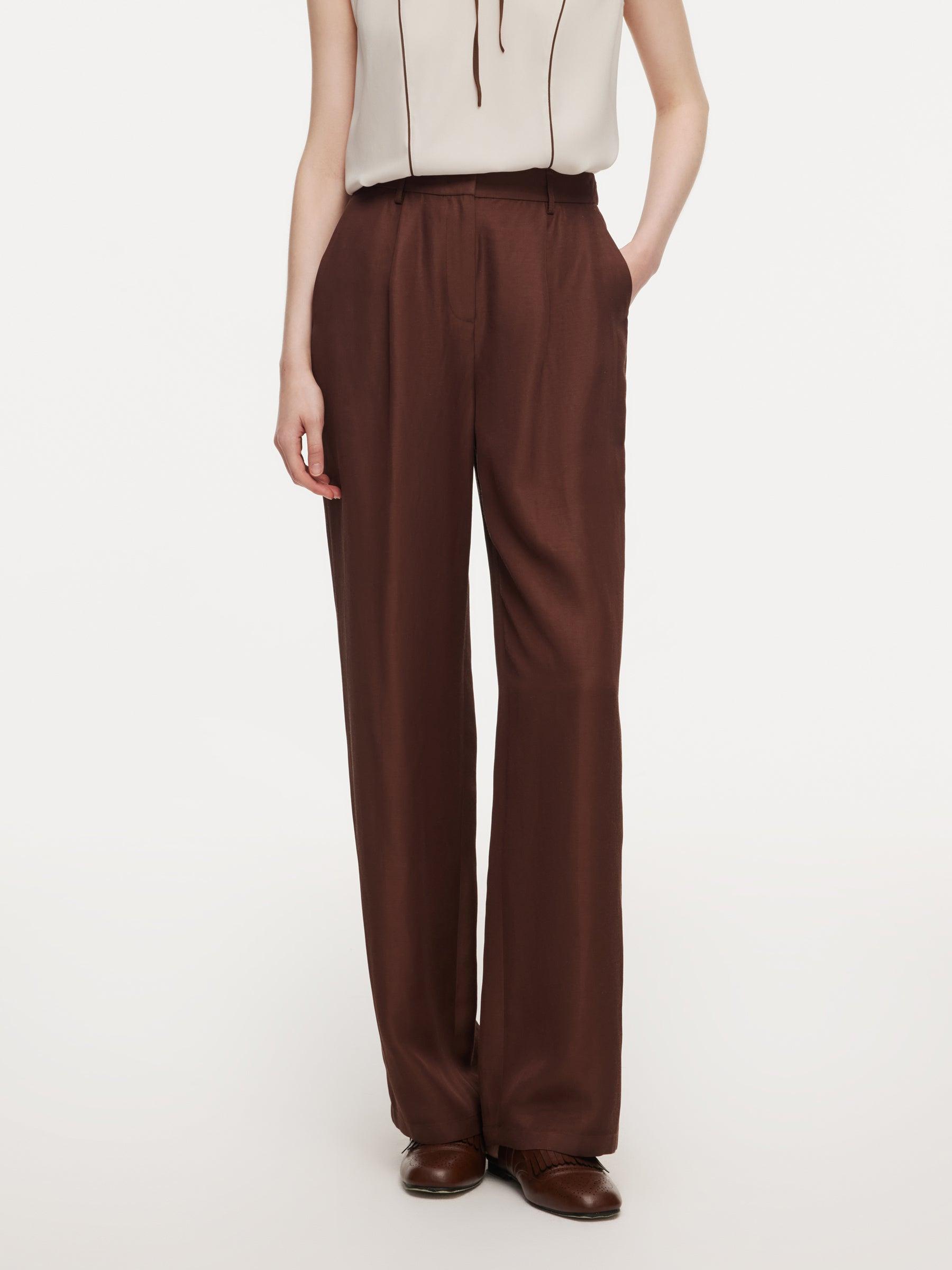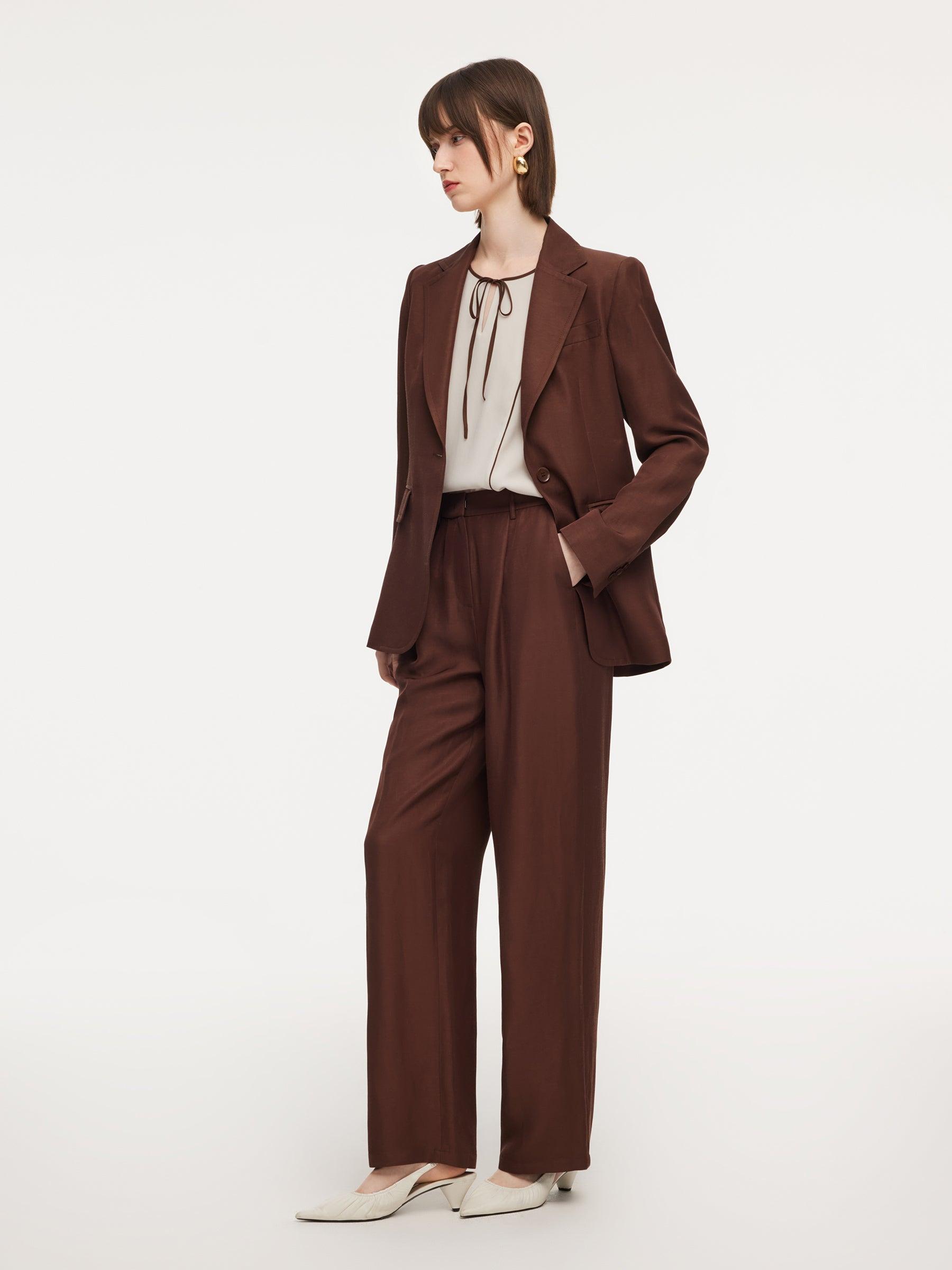 -With 56% Acetate, 33% tencel and 11% linen -Straight leg -With pockets These tencel-acetate-linen blend straight-leg pants offer a breathable, wrinkle-resistant solution for women seeking all-day polished comfort. The high-drape fabric and classic straight silhouette ensure effortless movement and a crisp look. Featur