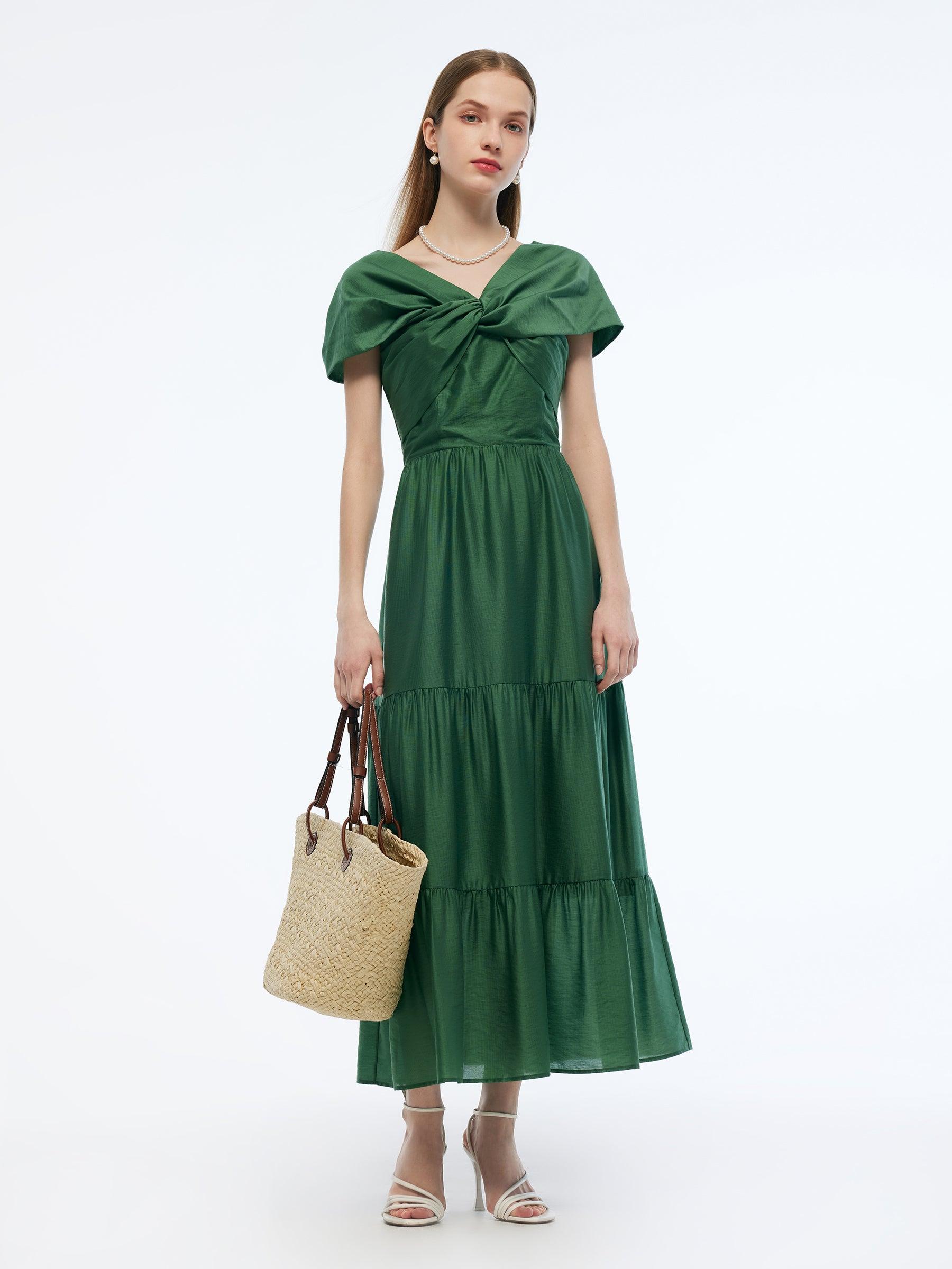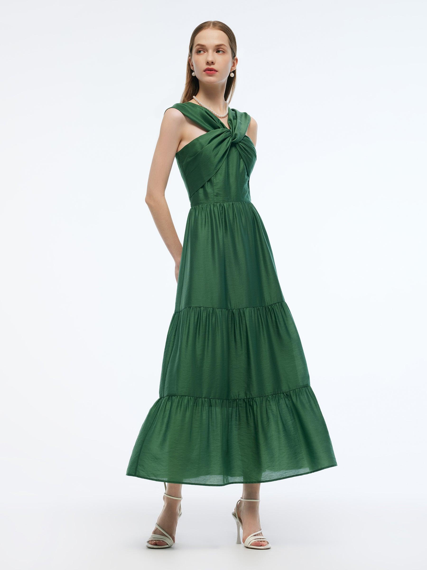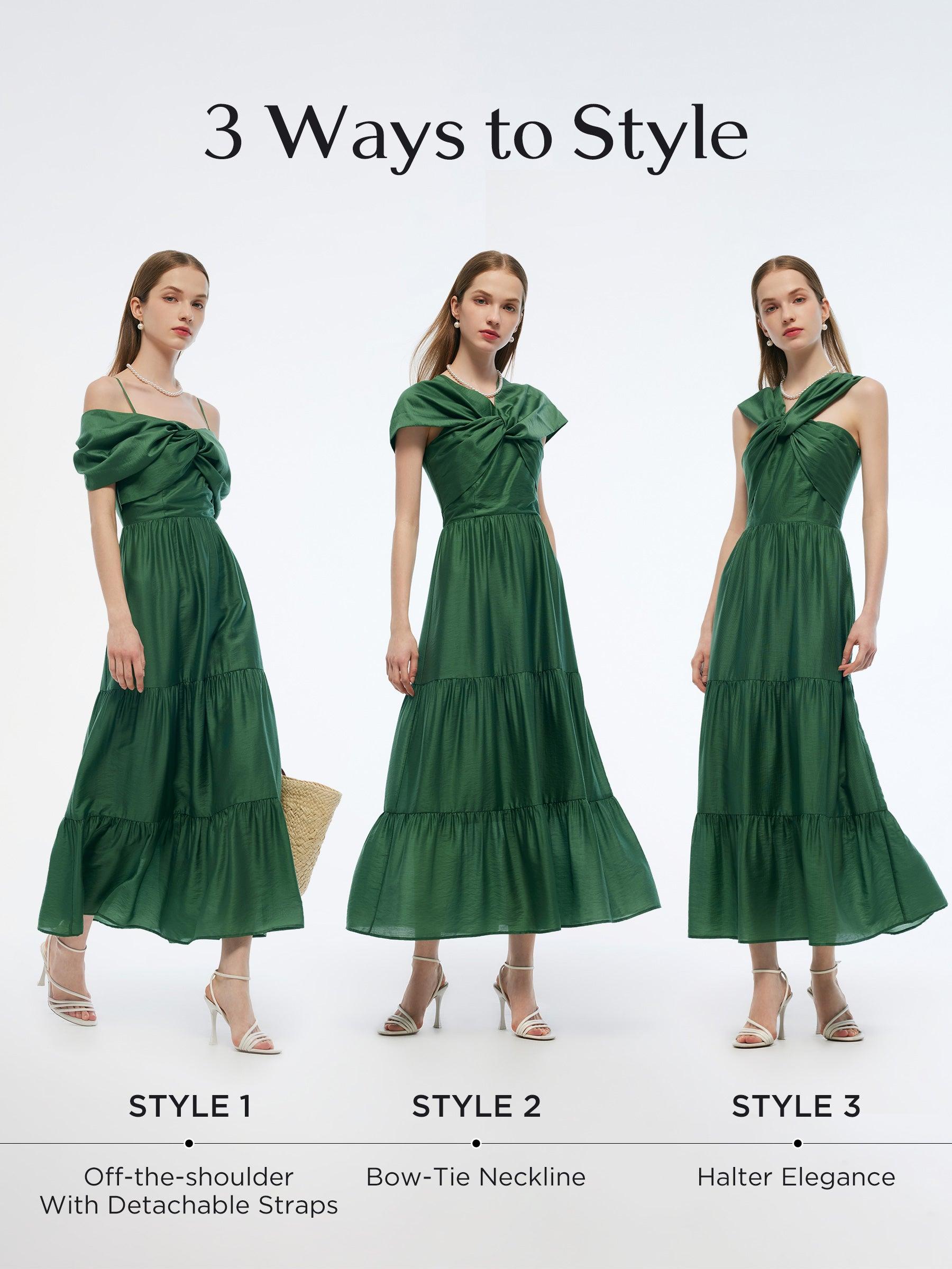 -Tencel blend fabric -With detachable chest pads and straps -With side zipper Convertible neckline makes this maxi dress both practical and stylish. Crafted from lightweight tencel blend fabric, this dress features smocked design at the back and tiered hemline. Completed with side zipper, detachable shoulder straps and