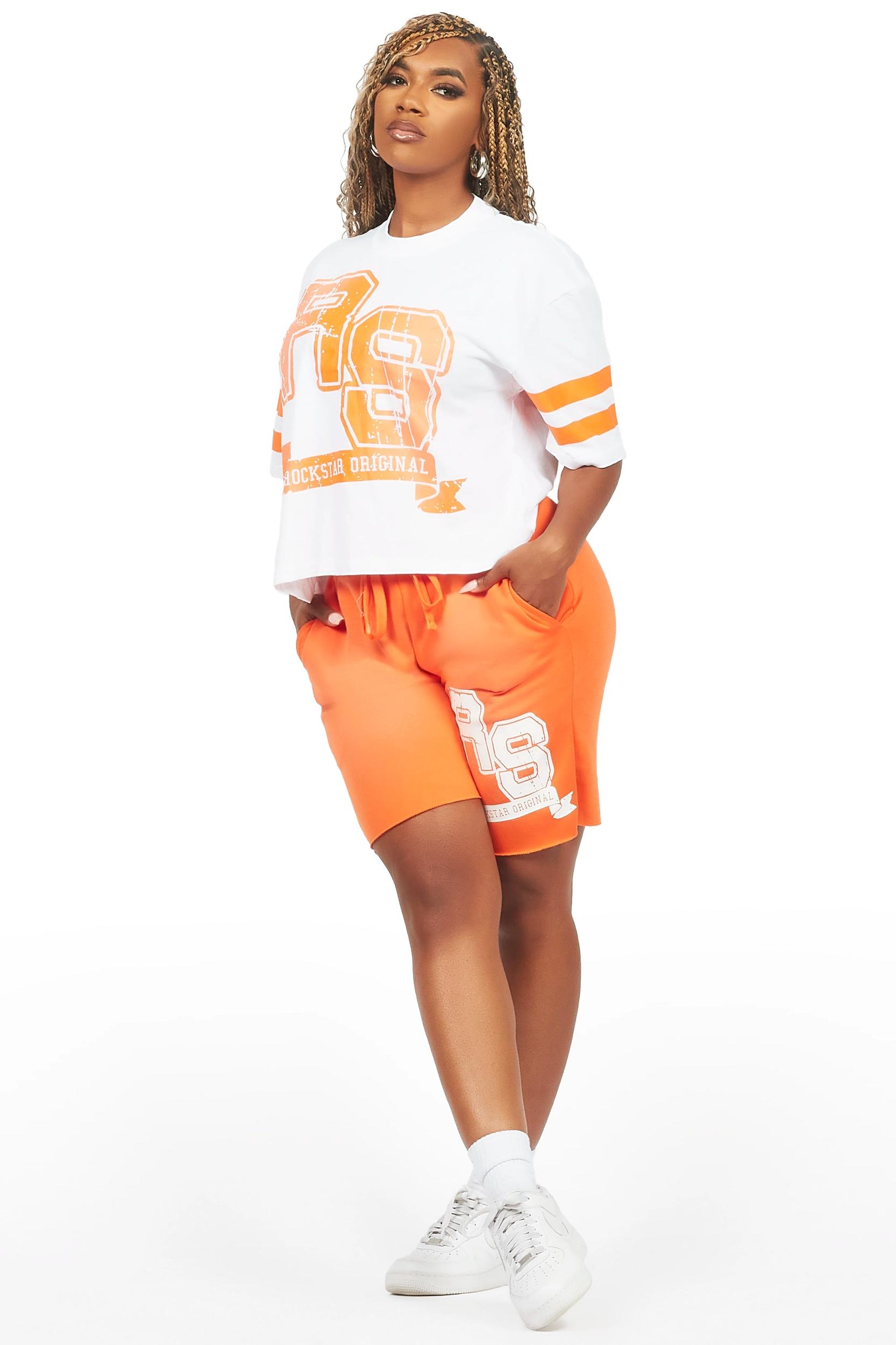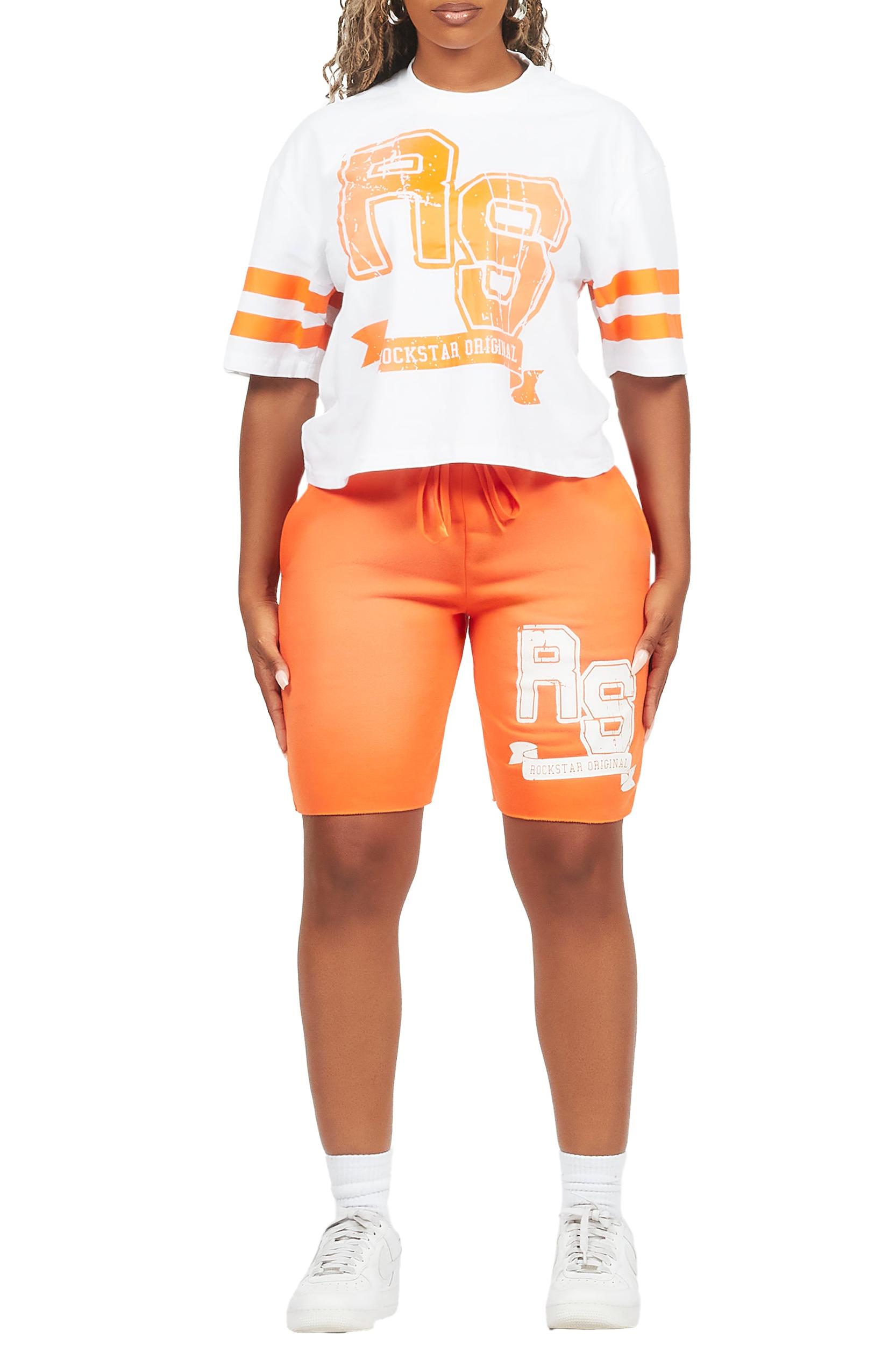 Tenita White/Orange T-Shirt Short Set Female Product Image