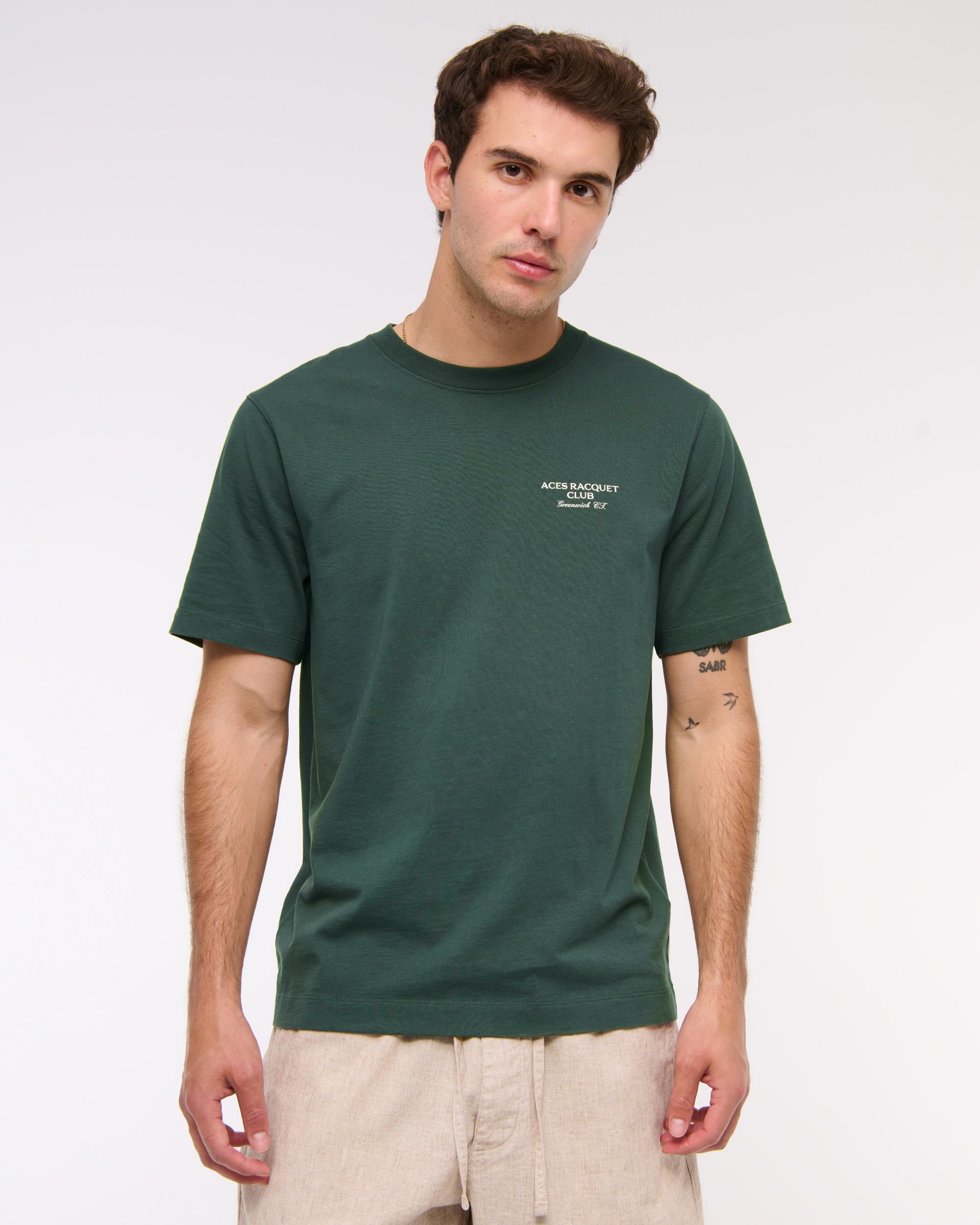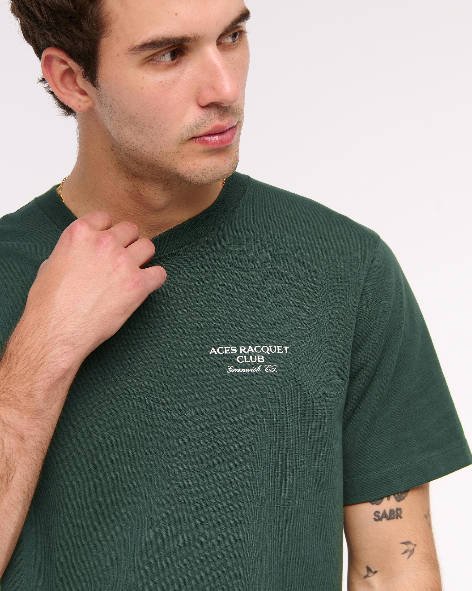 Our new short-sleeve tee in our softAF 212g fabric and new tailored back classic fit, with a biopolish finish, that creates a clean and crisp feel to the touch. Features tennis-inspired graphic details at left chest and back, crew neckline and straight hem.
