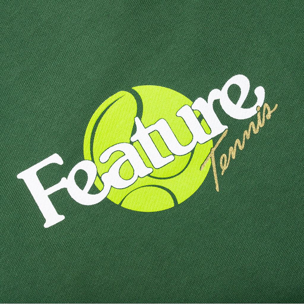 In celebration of the FEATURE and K-Swiss footwear collaboration, the FEATURE Tennis Sweatpants arrive with a screen-printed FEATURE brand logo and additional tennis graphics at the left thigh. The design features a drawstring waistband in addition to side pockets and rear pockets for added functionality. Ribbed ankle cuffs wrap up the remainder of the design. DUE TO THE NATURE OF THIS PRODUCT, ALL SALES ARE FINAL. Exclusive to FEATURE 14 oz heavyweight 475 GSM cotton Relaxed fit Side pockets Rear pockets Screen-printed logo branding Screen-printed graphics Ribbed cuffs Style No: F080923X02GR