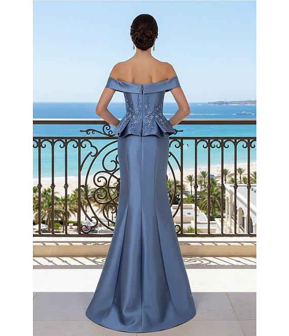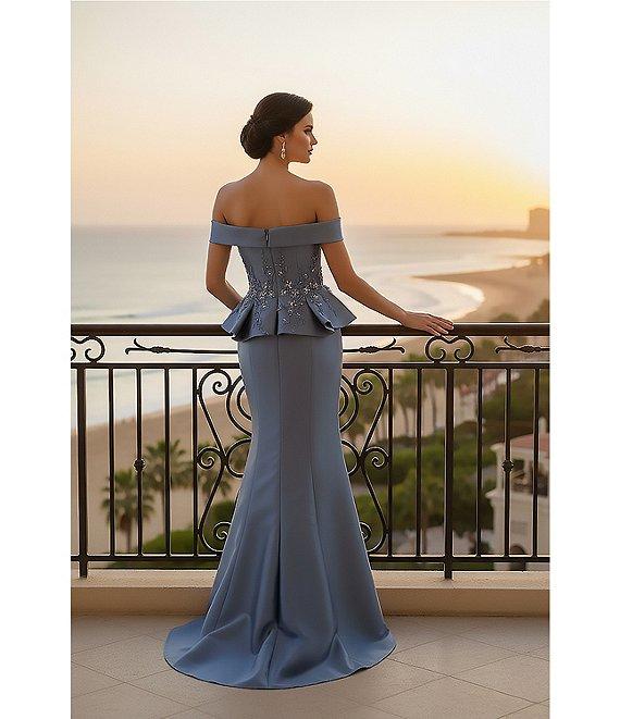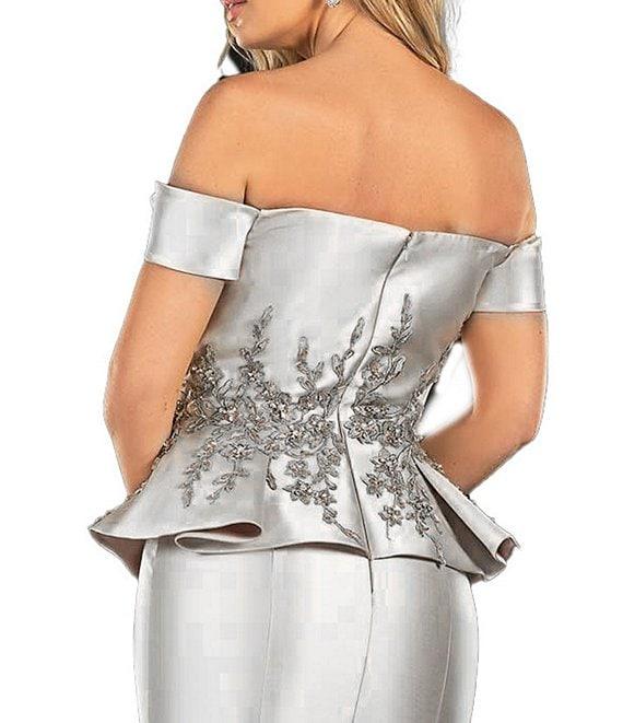 Terani Couture Off-the-Shoulder Pleated Floral Beaded Bodice Mermaid Gown