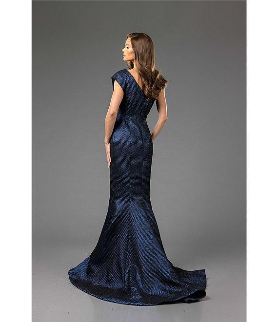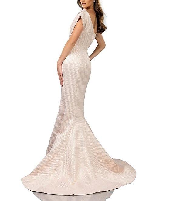 Terani Couture One Shoulder 3D Ruffle Front Front Jacquard Mermaid Gown