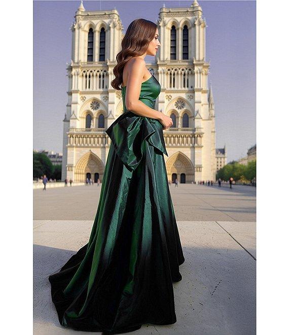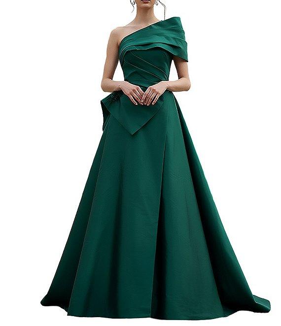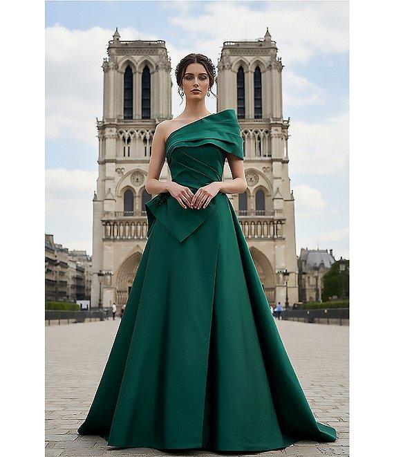 Terani Couture One Shoulder Taffeta Draped Gown
