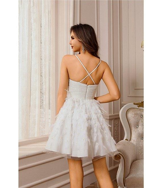Terani Couture Sweetheart Neckline Tulle Feather Short Dress