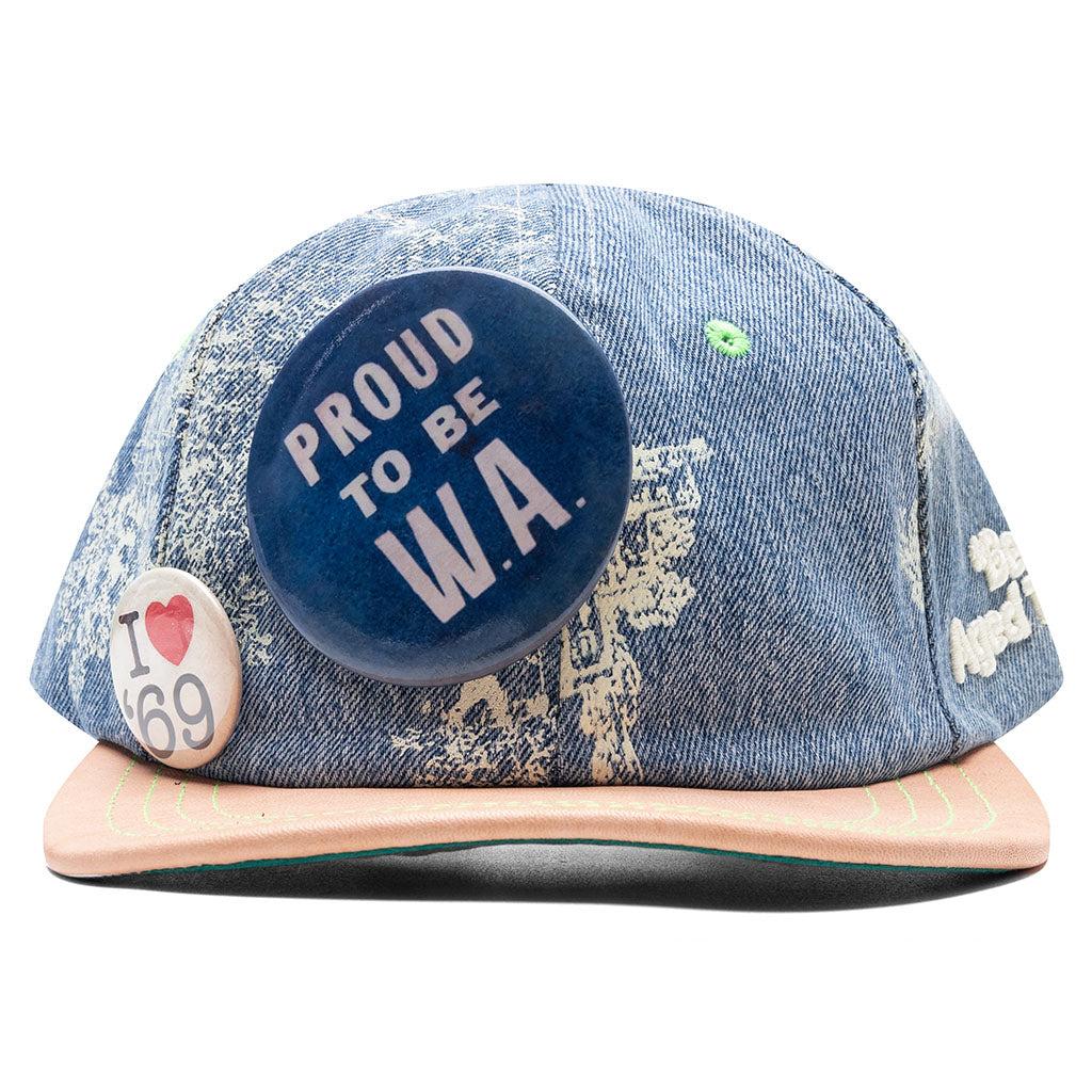 The Better With Age Teresa Reconstructed Denim Hat is a one-of-a-kind accessory made from vintage denim. Each hat is uniquely reconstructed making each piece special, staying true to the brand's commitment to sustainability and individuality. With a classic trucker silhouette, the hat features a straight brim, mesh panels, and an adjustable snapback closure. The final touches to the hat are embroidered logo detailing and graphic elements. BUYER WILL RECEIVE A ONE-OF-ONE VINTAGE HAT IN A RANDOMLY SELECTED COLOR. PRODUCT IMAGES SHOWN ARE EXAMPLES AND MAY NOT REFLECT THE EXACT ITEM RECEIVED.ALL SALES ARE FINAL. Fabric type varies Constructed from denim materials One-of-a-kind design Trucker silhouette with straight brim Embroidered logo detailing Mesh panels for breathability Adjustable snapback closure Style No: BWAHTER-IND