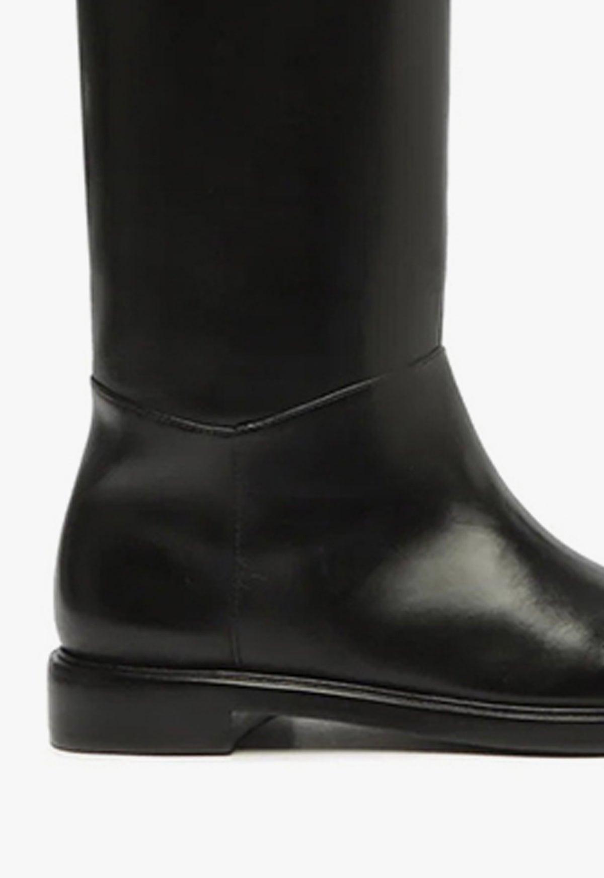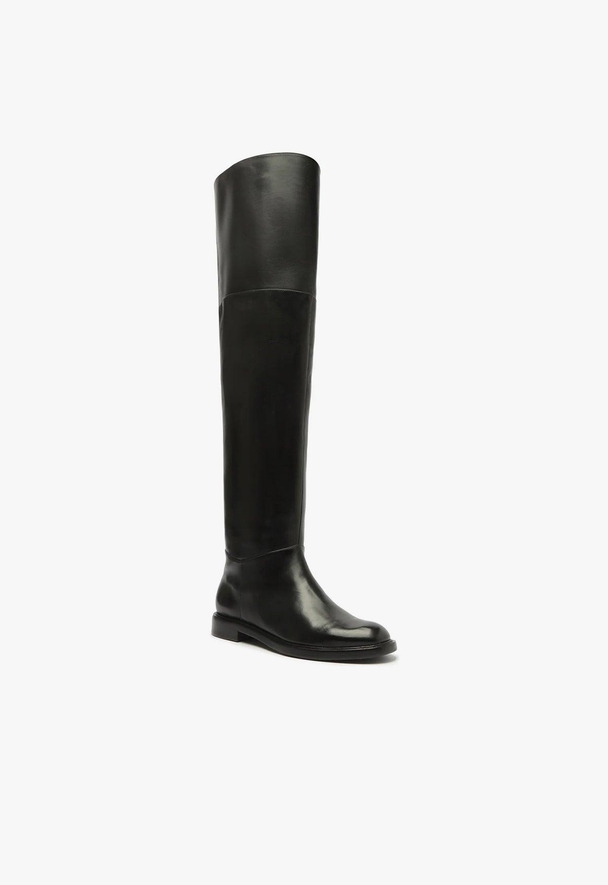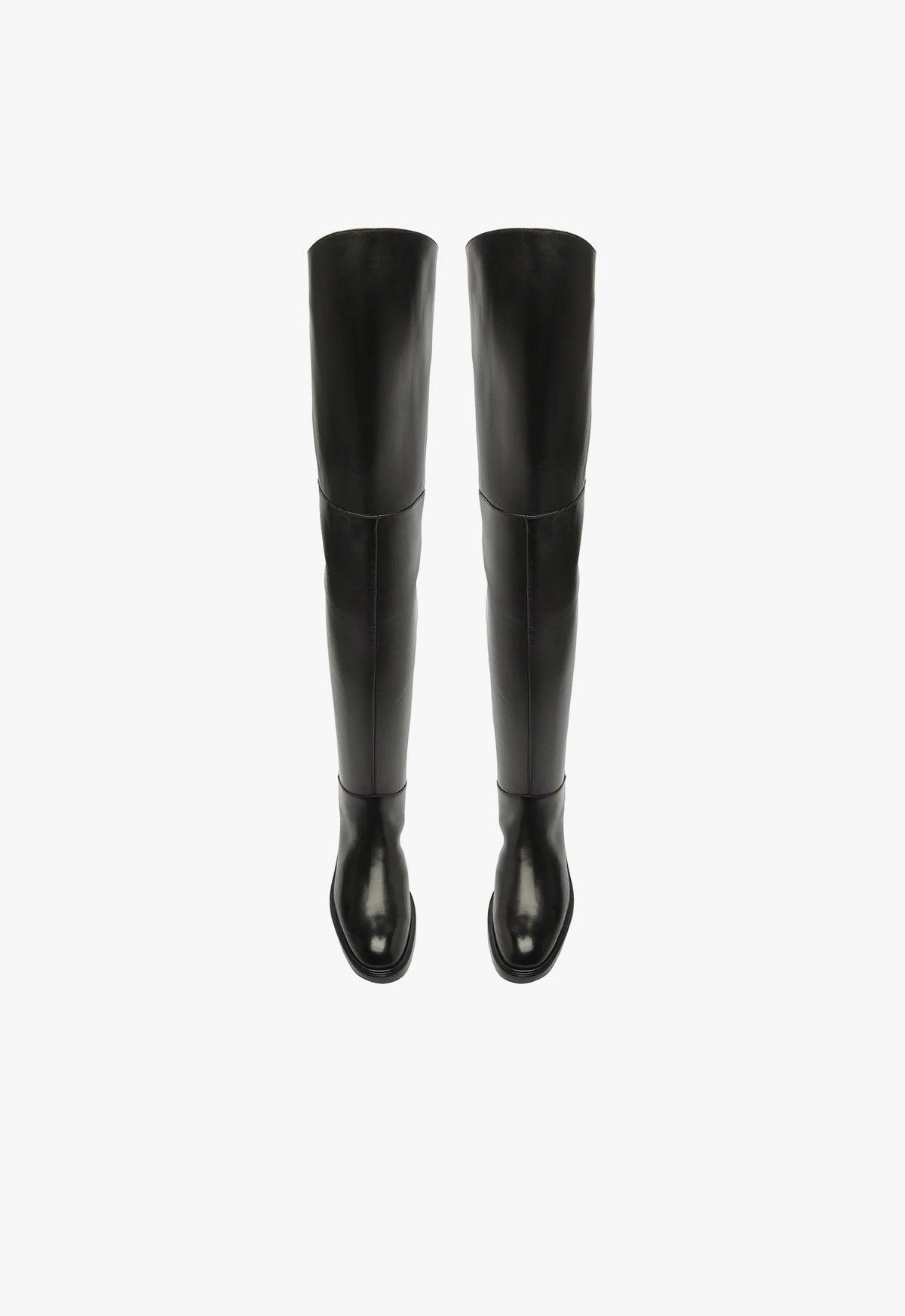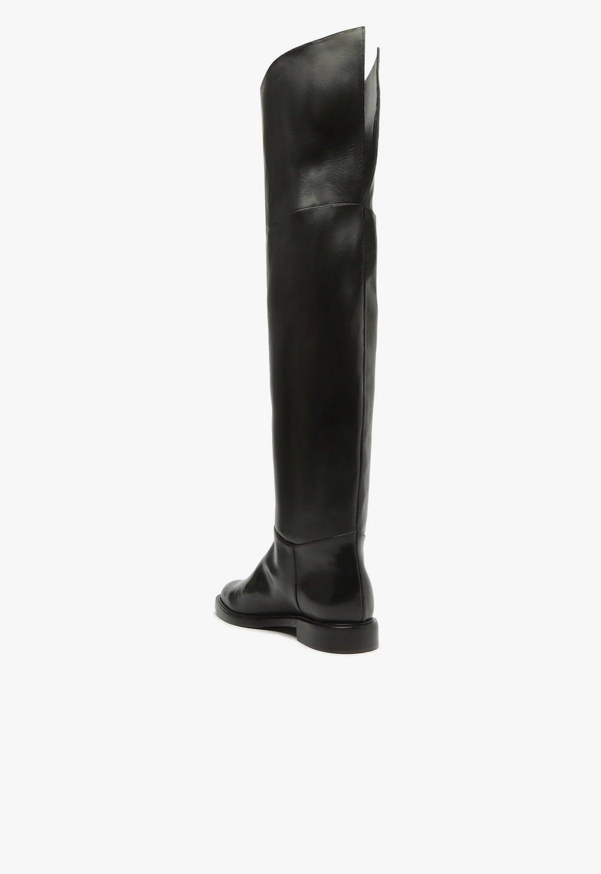 Our bold and stylish Terrance Boot commands attention with its daring height, a testament to your adventurous and bold fashion sense. Crafted from high-quality leather, this over-the-knee boot features a smooth, polished finish that adds a touch of finesse to its edgy design. The boot's streamlined upper wraps snugly around the leg, providing a sleek, elongated look. The almond-shaped toe and flat sole contribute to its modern and versatile appeal, making it perfect for pairing with everything from skinny jeans to skirts. The Terrance will elevate your style, whether for a bold, urban look or a rebellious flair to a more polished outfit.Materials: Leather Upper | Leather OutsoleHeel Type: FlatToe Style: Round ToeClosure Type: Zipper ClosureCounter Type: ClosedShaft Height: 25 In | 635 mmShaft Height: 24.6 In | 625 mmShaft Circumference: 19.7 In | 500 mmSKU: S2107200160002