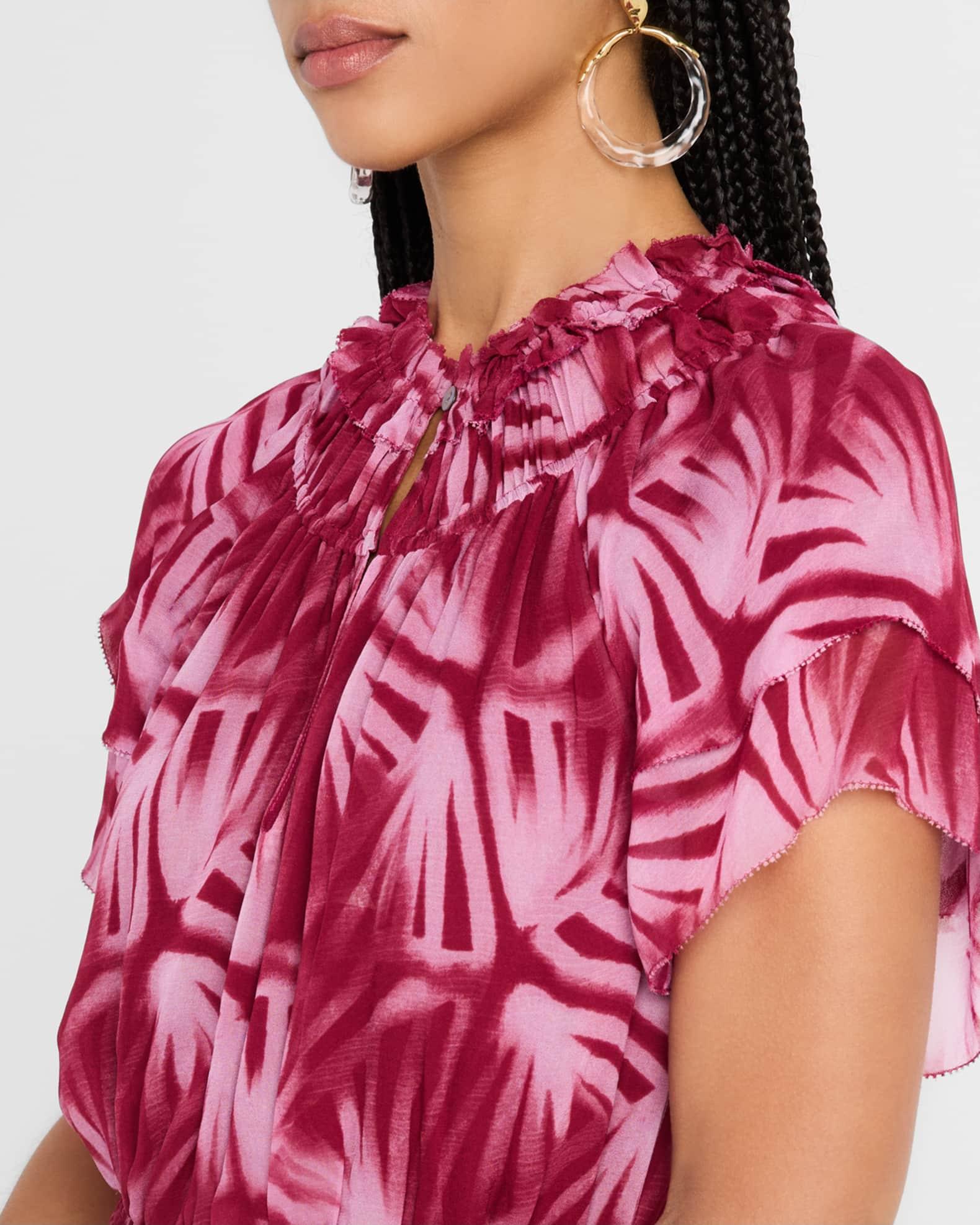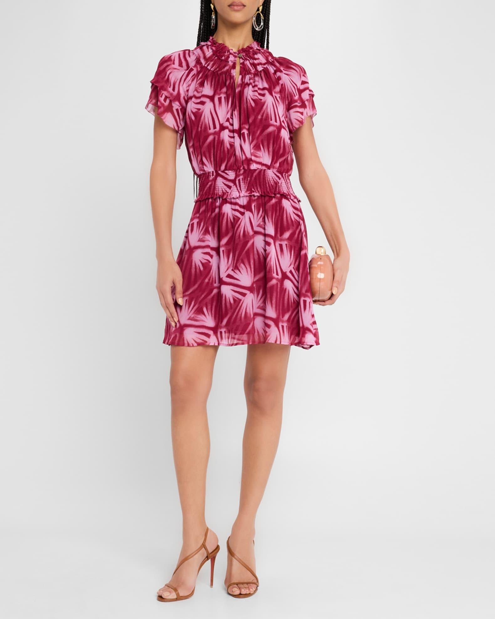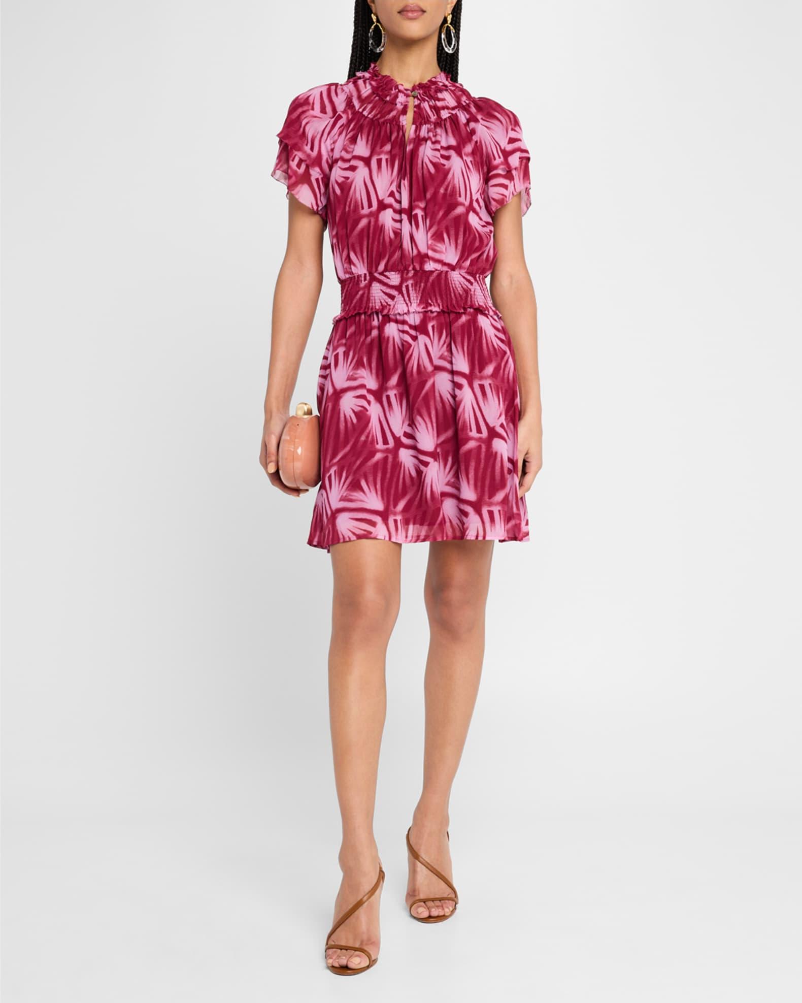 Rails "Terrin" dress features a ruffled neckline Approx. 34.8"L from shoulder to hem High neckline with a front button-and-loop closure Tiered short sleeves Smocked waistband Hem falls above the knee A-line silhouette Slipover style Viscose/polyester Lining: Polyester Dry clean Imported