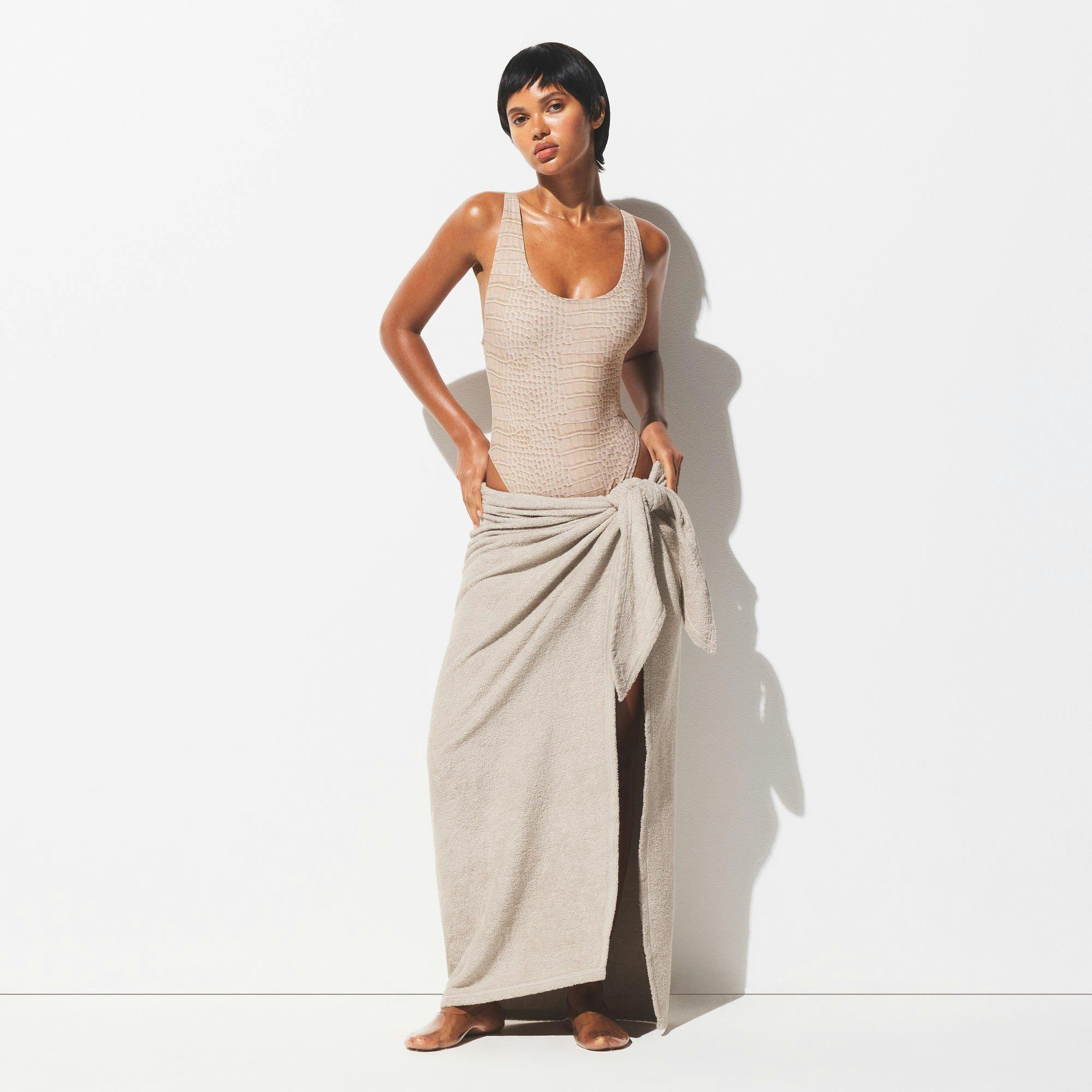 The sexiest sarong. Flattering and stylish in the softest midweight terry, this long sarong is the finishing touch to a stunning SKIMS Swim look. Featur...