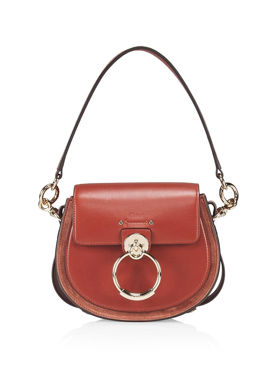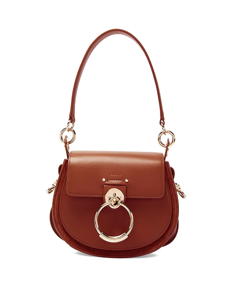 Made in Italy, Chlos Tess bag is crafted of buttery suede and smooth leather. This equestrian-inspired piece is highlighted with signature logo-engraved hoop hardware. Removable shoulder strap Removable top handle Goldtone hardware Foldover top with magnetic closure Exterior slip pocket Interior slip pocket Suede/leather Linen lining Made in Italy SIZE 8W x 6.75H x 2.25D ABOUT THE BRAND In 1952, founder Gaby Aghion established Chlo as an alternative to couture, and to appeal to the aspirations and empowerment of women. The label is now led by Creative Director Gabriela Hearst, who furthers its signature aesthetic of cool, French-girl style. Handbags - Chloe Handbags > Chlo > Saks Fifth Avenue > Barneys. Chlo. Color: Sepia Brown.
