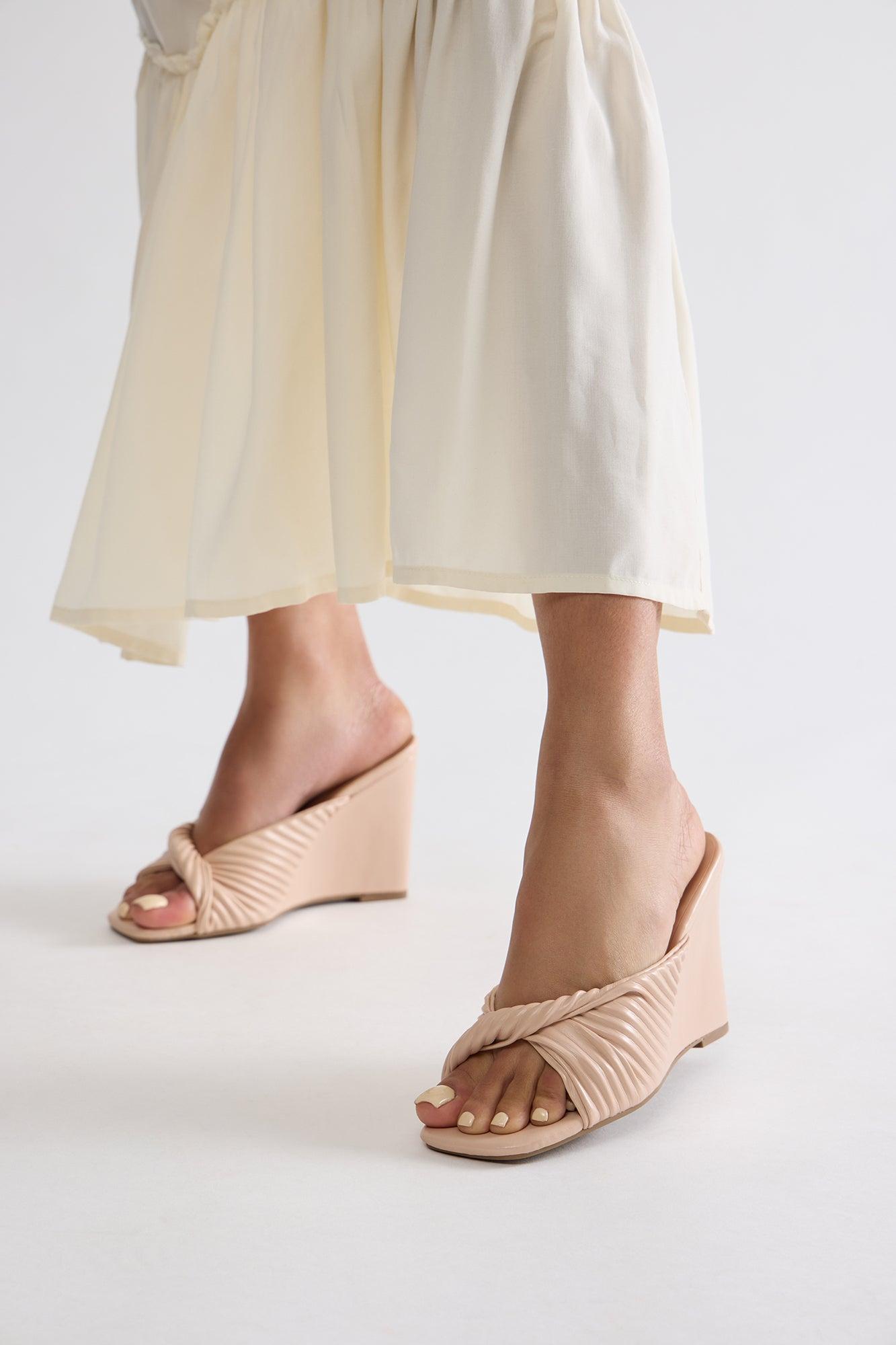 Tessy Faux Leather Wedges - Nude