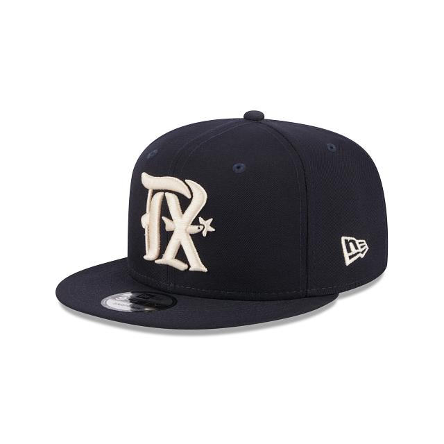Jersey inspired, city connected. The Texas Rangers City Connect 9FIFTY Snapback draws originality from unique elements tied to the surrounding city and features an embroidered Rangers logo at the front panels with a 4.21 wordmark at the right-wear side. Additional details include a snapback closure at the rear and a blue undervisor.