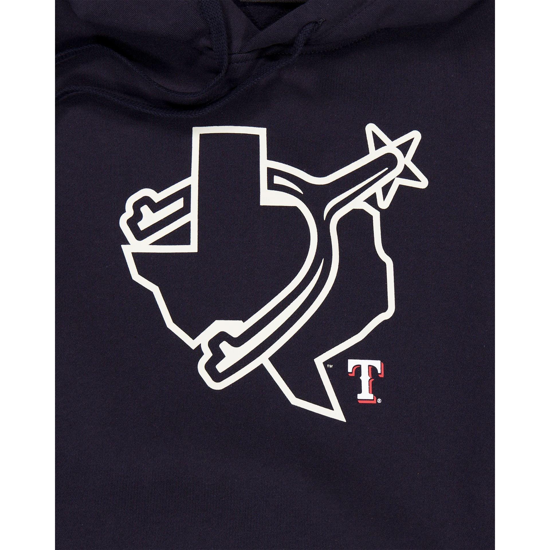Jersey inspired, city connected. The Texas Rangers City Connect Women's Hoodie features a screen-printed Rangers logos at the front with alternate team logos at the left-wear sleeve.Fabric: 80% Cotton, 20% Polyester