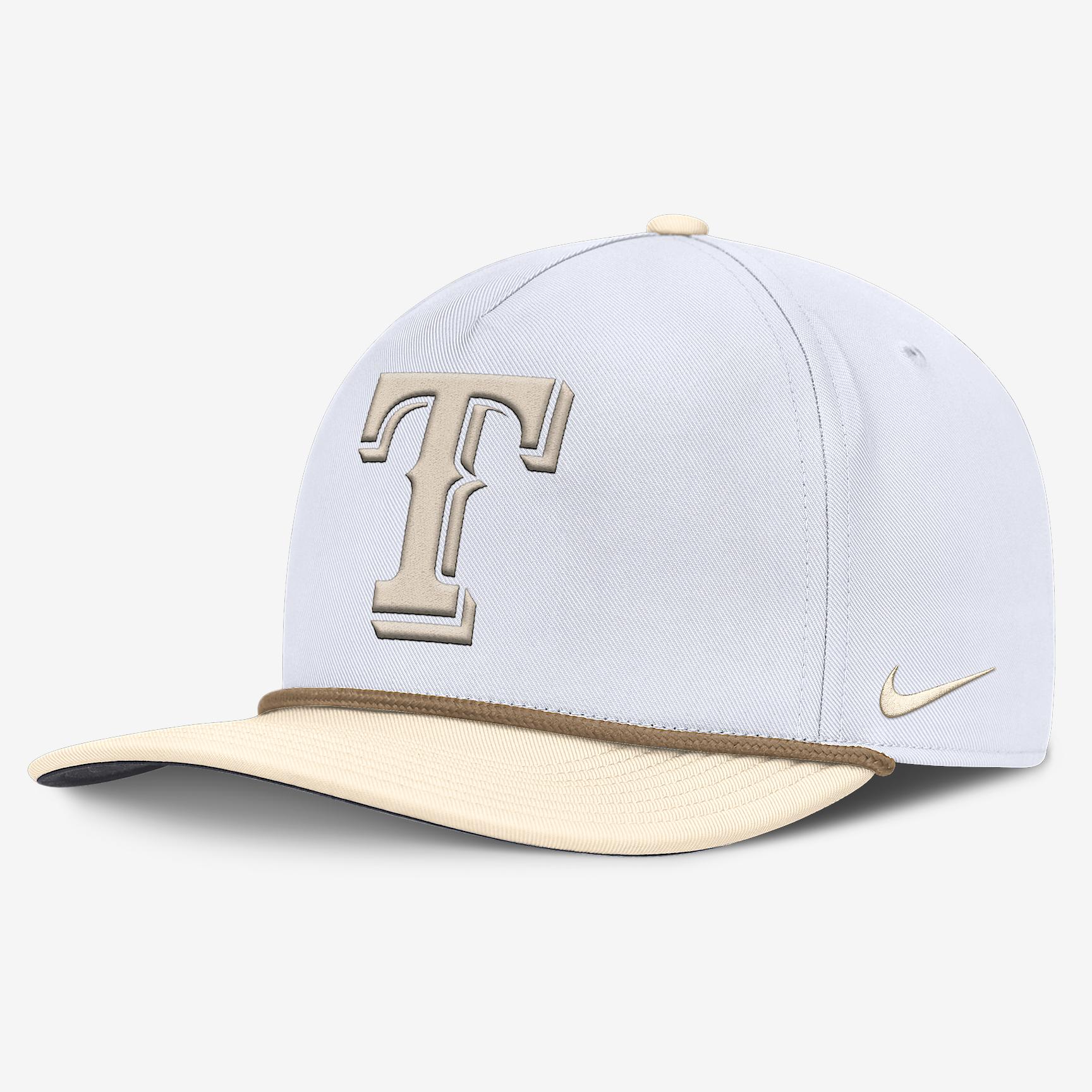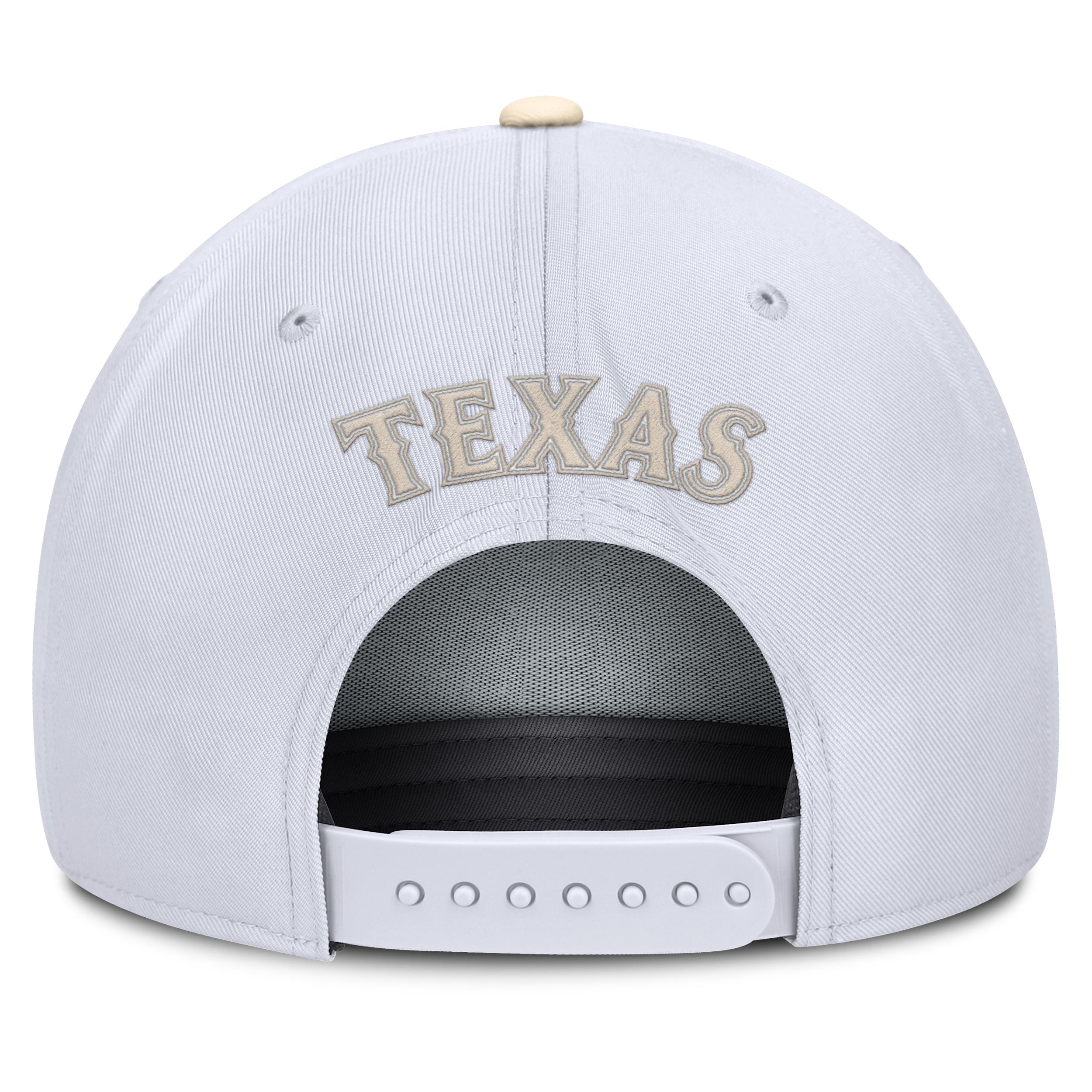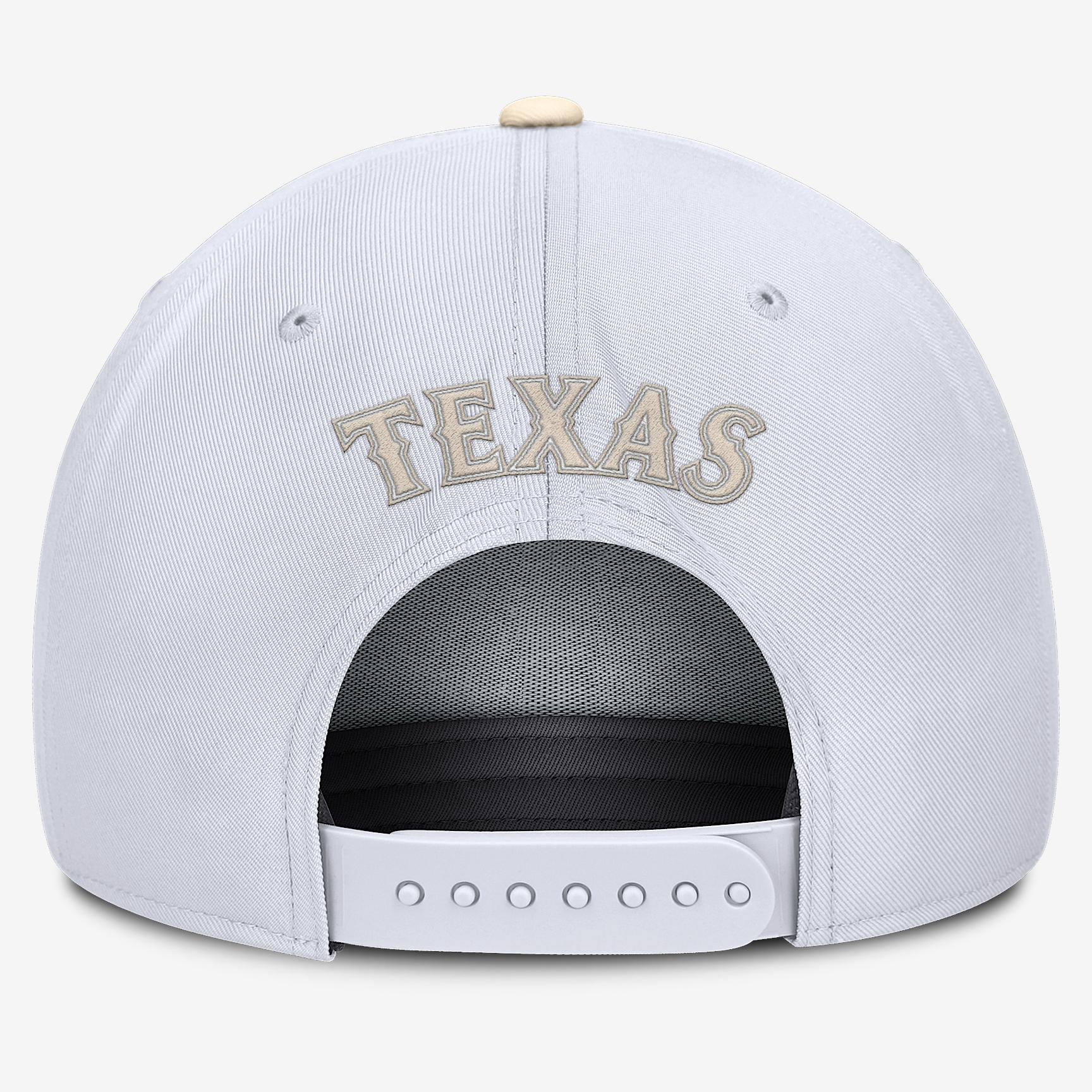 With sweat-wicking fabric and a lightweight construction, the Pro Hat is made for optimum comfort. Its two-tone design and Texas Rangers embroidery on the crown help ensure your team pride is front and center. Benefits:Nike AeroBill technology combines breathability with sweat-wicking comfort to help reduce distractions. Snapback closure provides a customizable fit. [] Product Details:6-panel design. Embroidered eyelets. 100% polyester. Hand wash. Imported. Style: NB510H38TER; Color: White; Size: M/L; Gender: Male; Age Group: Adult | Texas Rangers Pro Menâs Nike AeroBill MLB Adjustable Hat in White, Size: M/L | NB510H38TER-LZM