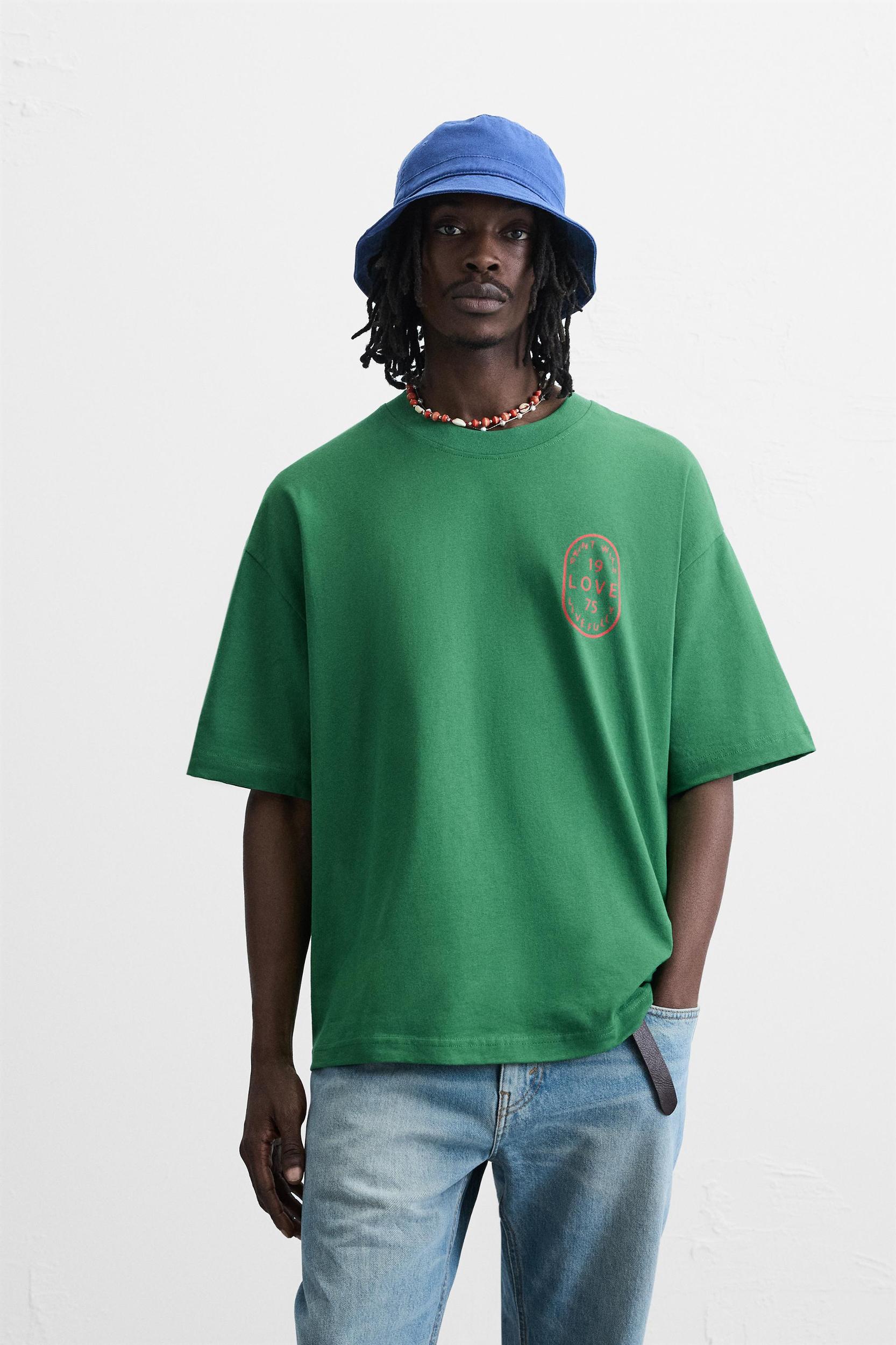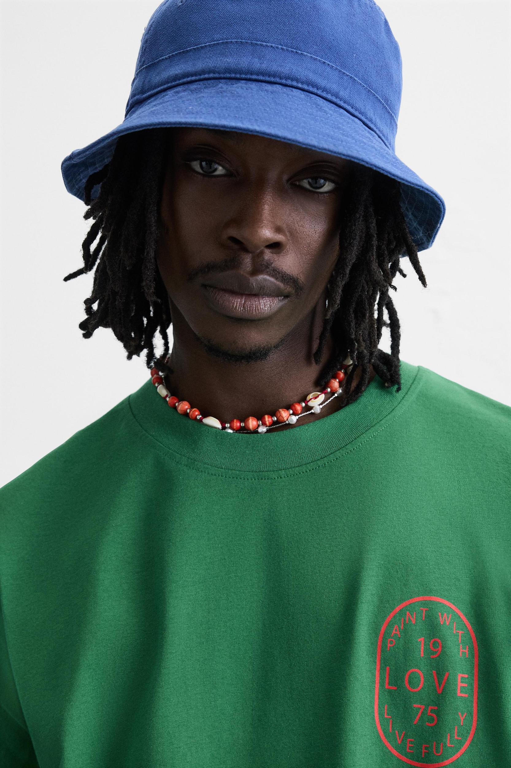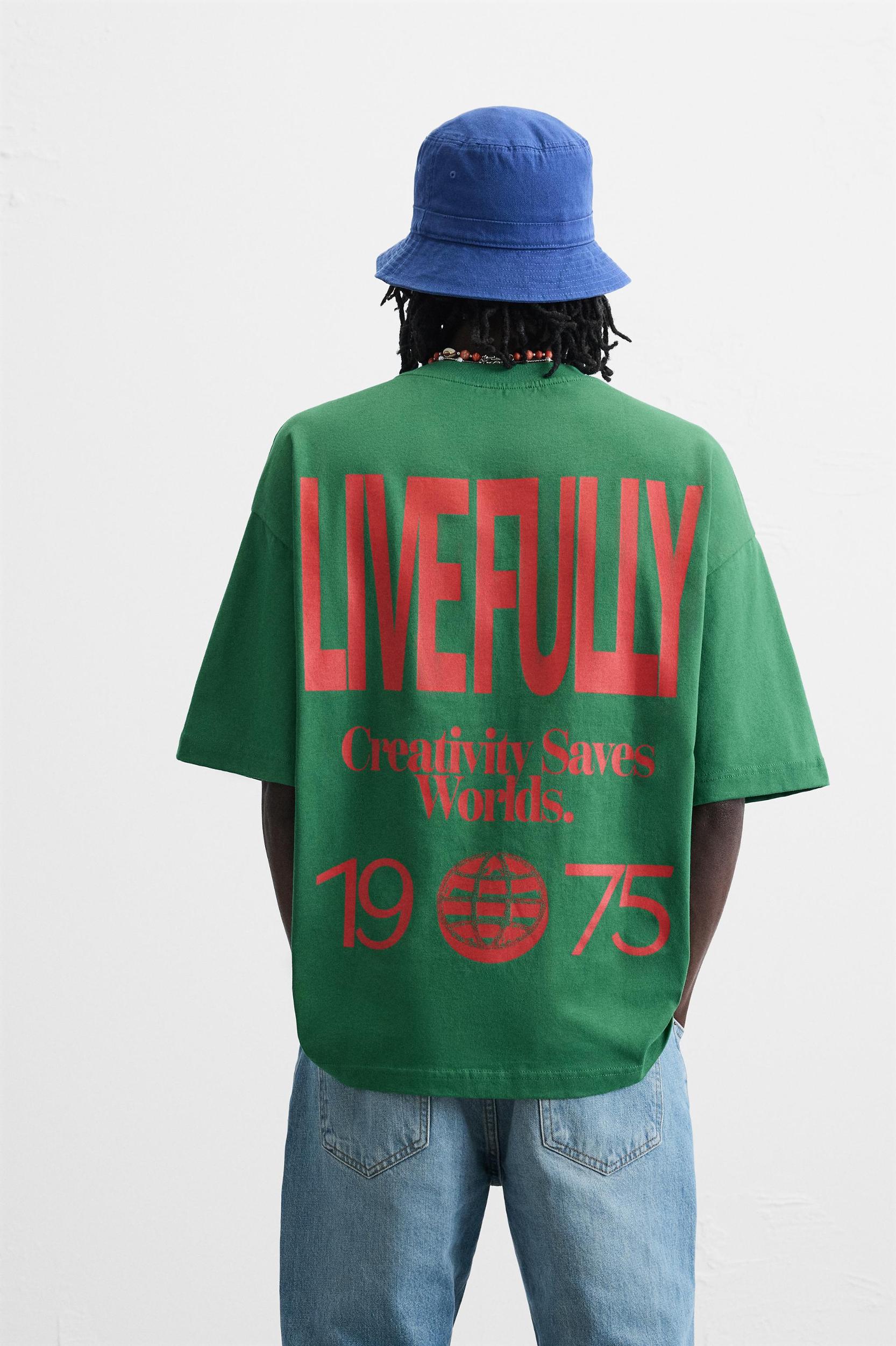 Relaxed fit T-shirt. Round neck and short sleeves. Contrasting combined text prints on the front and back.