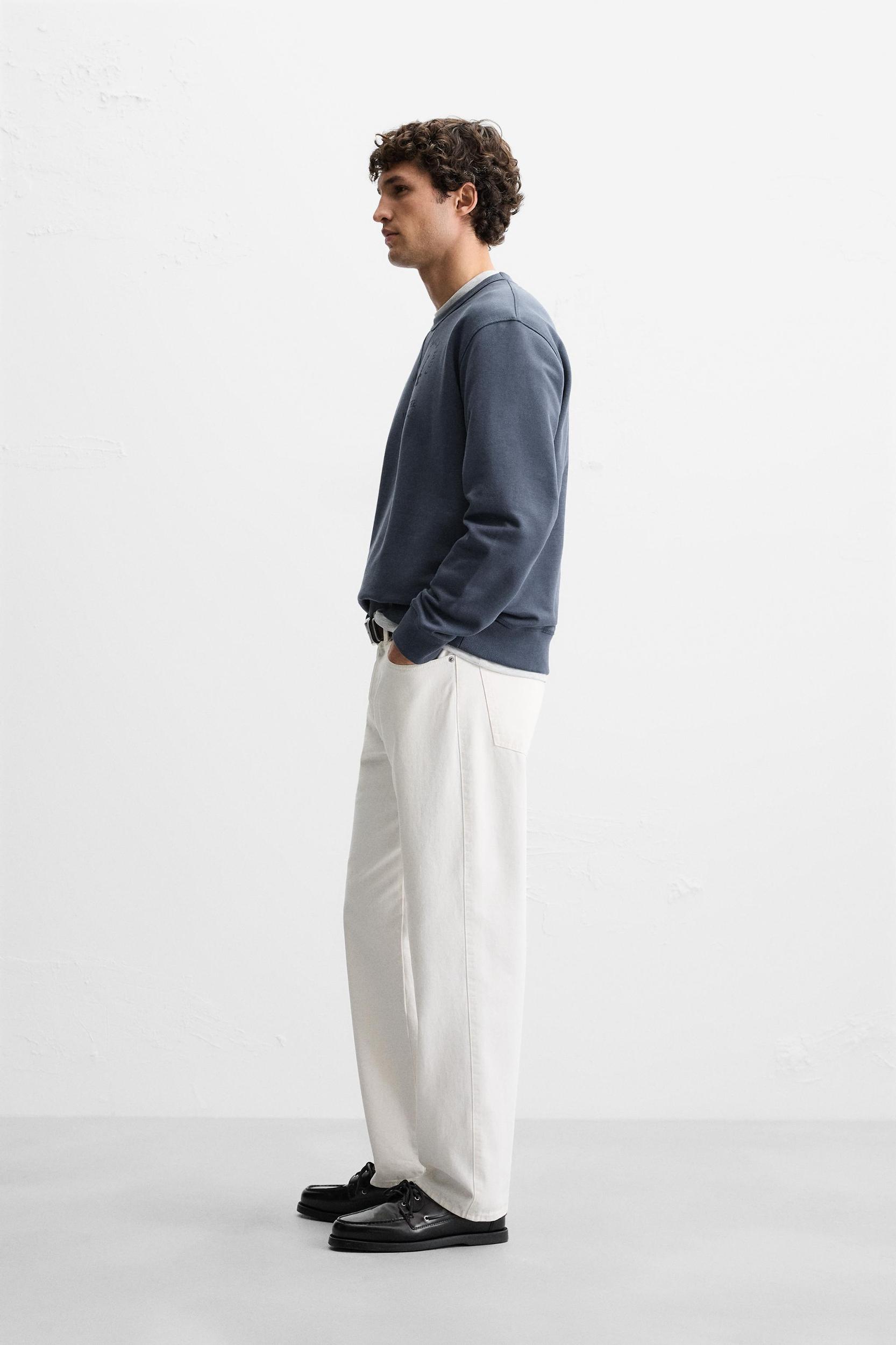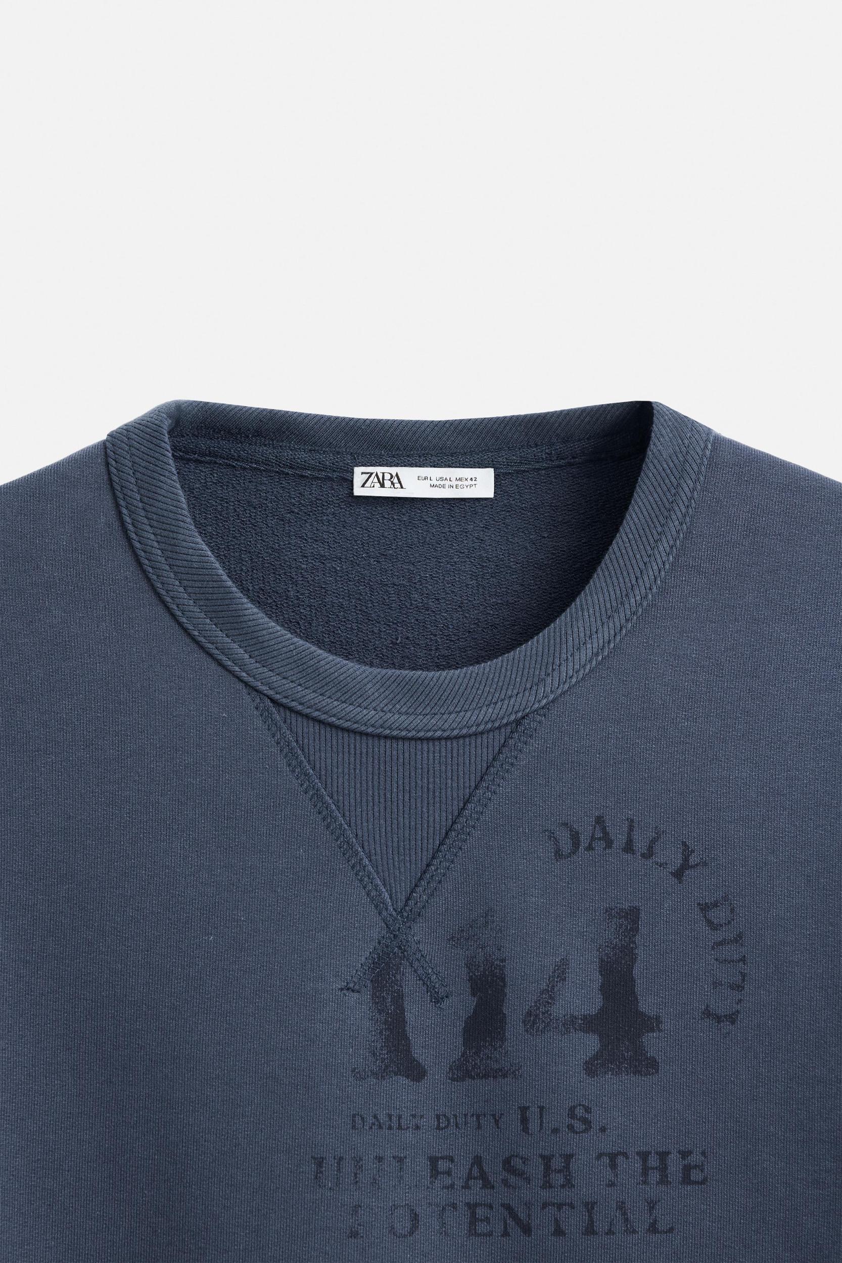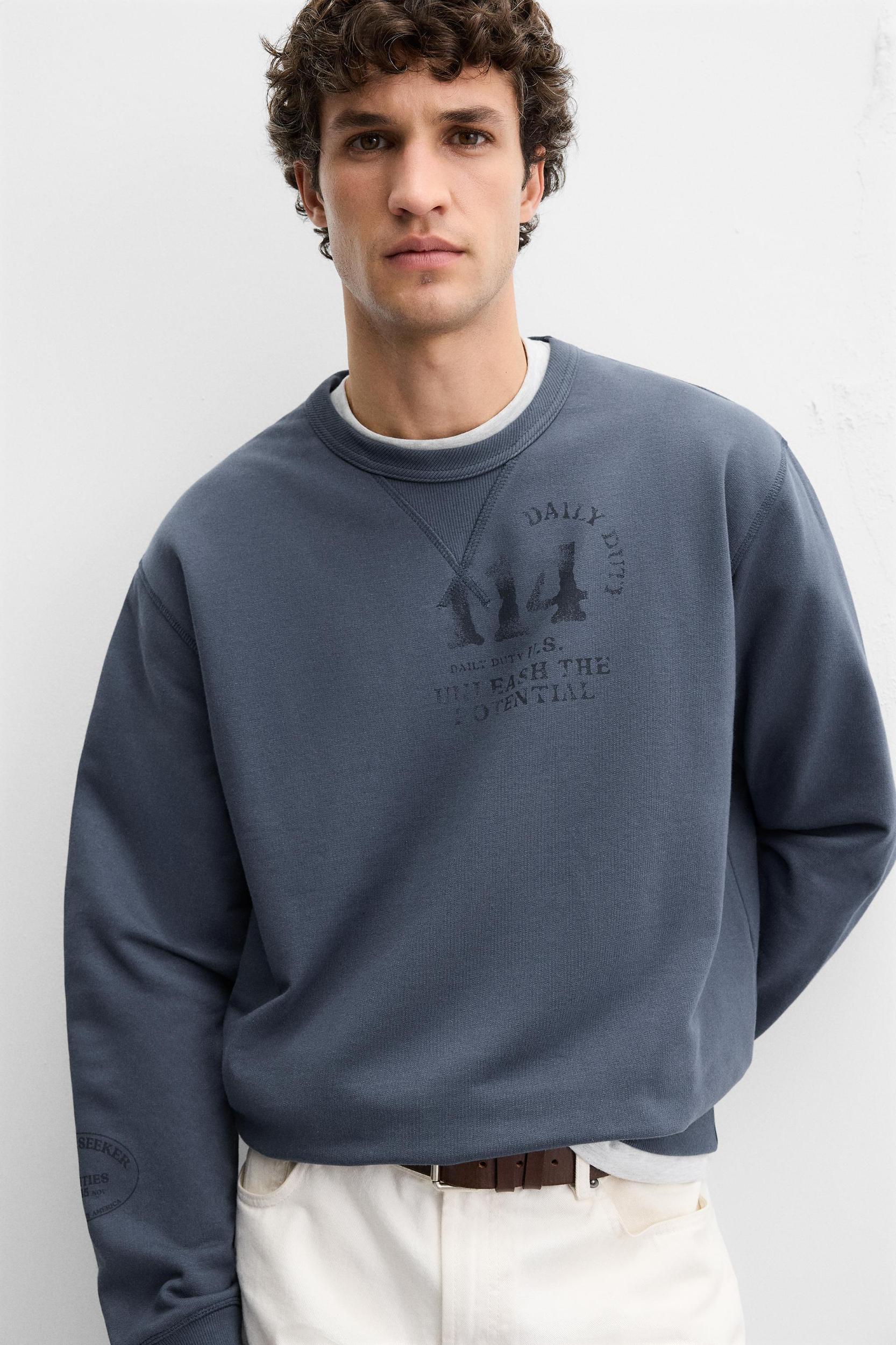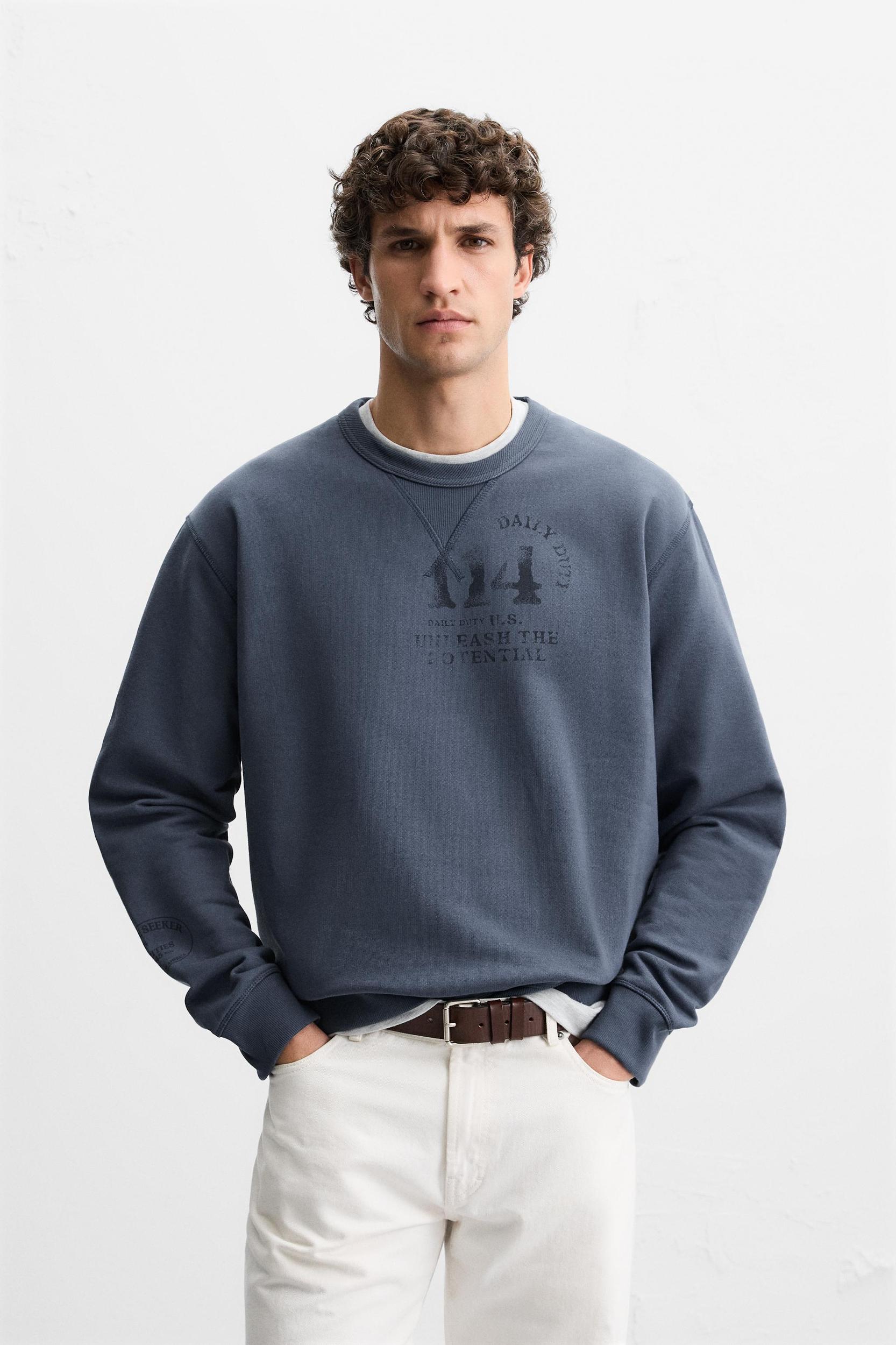 Regular fit sweatshirt. Crew neck and long sleeves. Matching printed text on the front. Washed effect. Ribbed trim.