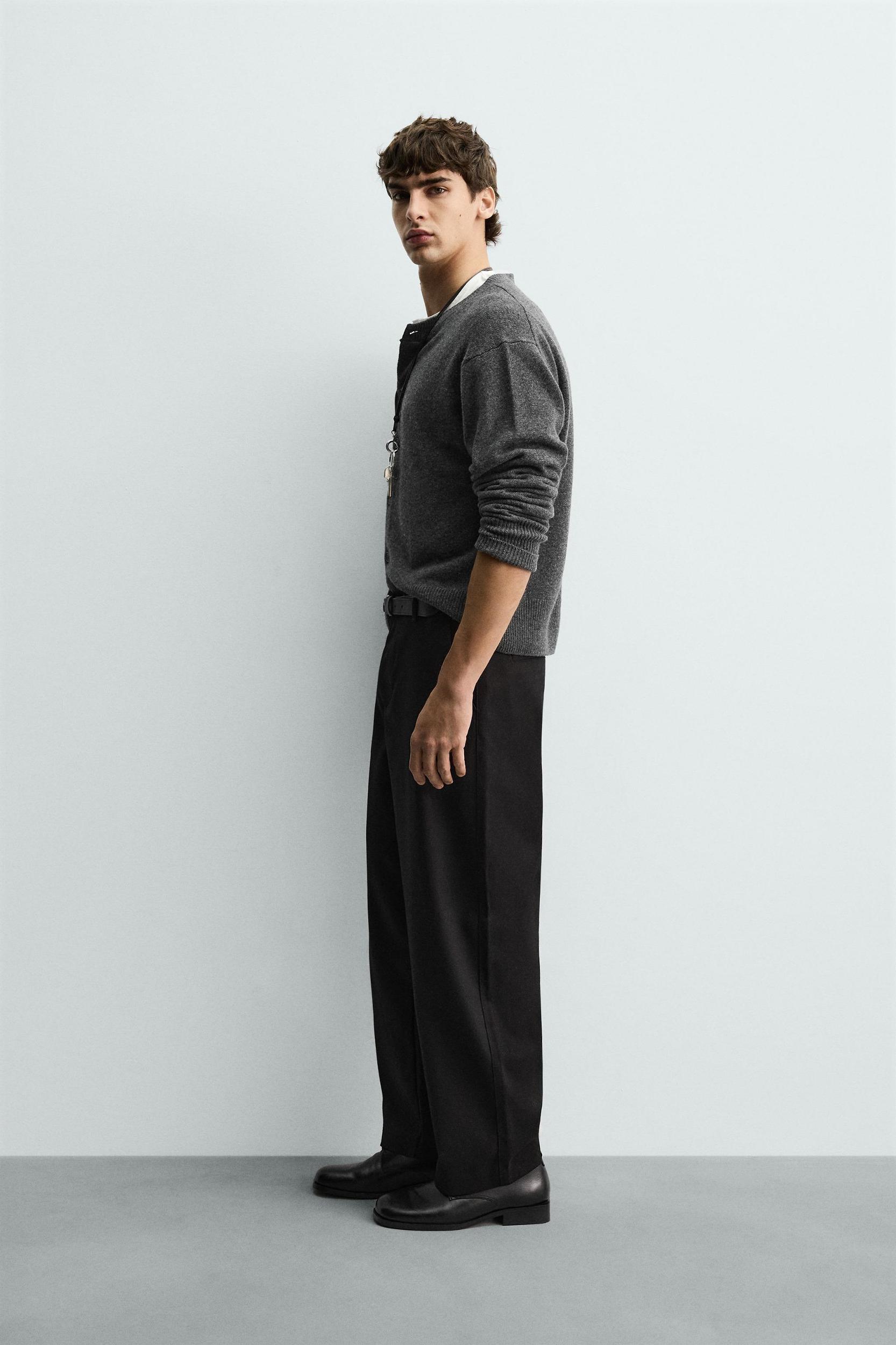 TEXTURED PLEATED PANTS