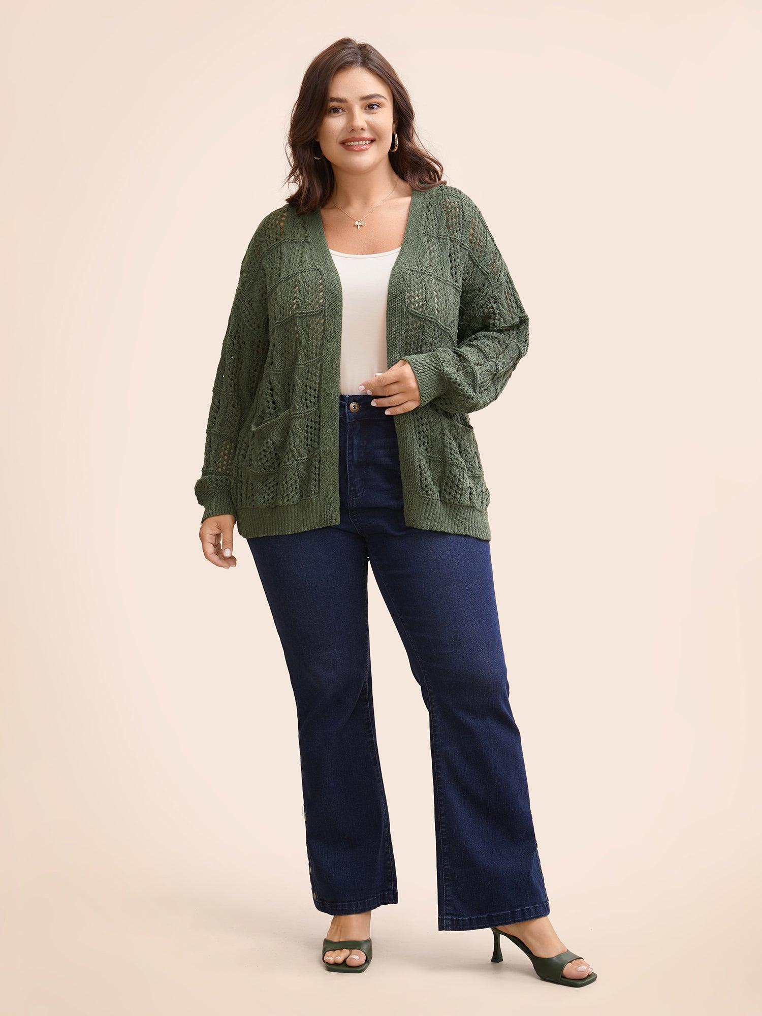 Shop Textured Cable Knit Pocket Cardigan now and redefine your style with confidence at BloomChic. Tailored for mid and plus-size women. This trendy Sweaters Cardigans Women, sizes 10-30. Season:Winter;Color:Moss;Style:Casual;Neckline:Kimono collar;Sleeve Type:Drop shoulder sleeve;Prints:Non;Details:Cut-Out, Texture;Pocket:Patch pocket;Belt:No-belt;Closure Type:Open front without closure