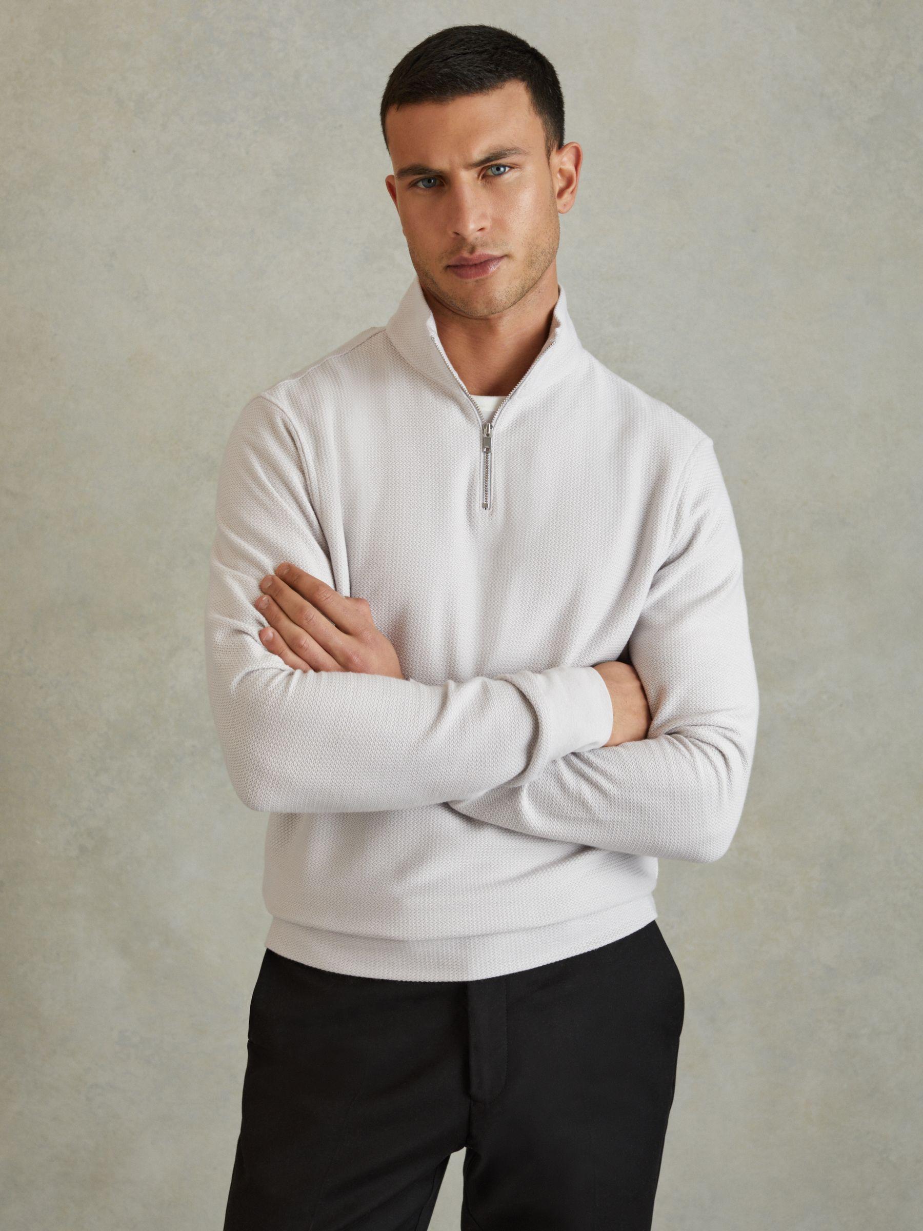 Whether you wear alone or layer, the Callum top comfortably skims the body thanks to its textured cotton fabric and half-zip funnel neckline. 100% cotton. Textured. Half-zip funnel neckline. The model is wearing a size M. Measurements of model: 6ft 2" / 188cm.