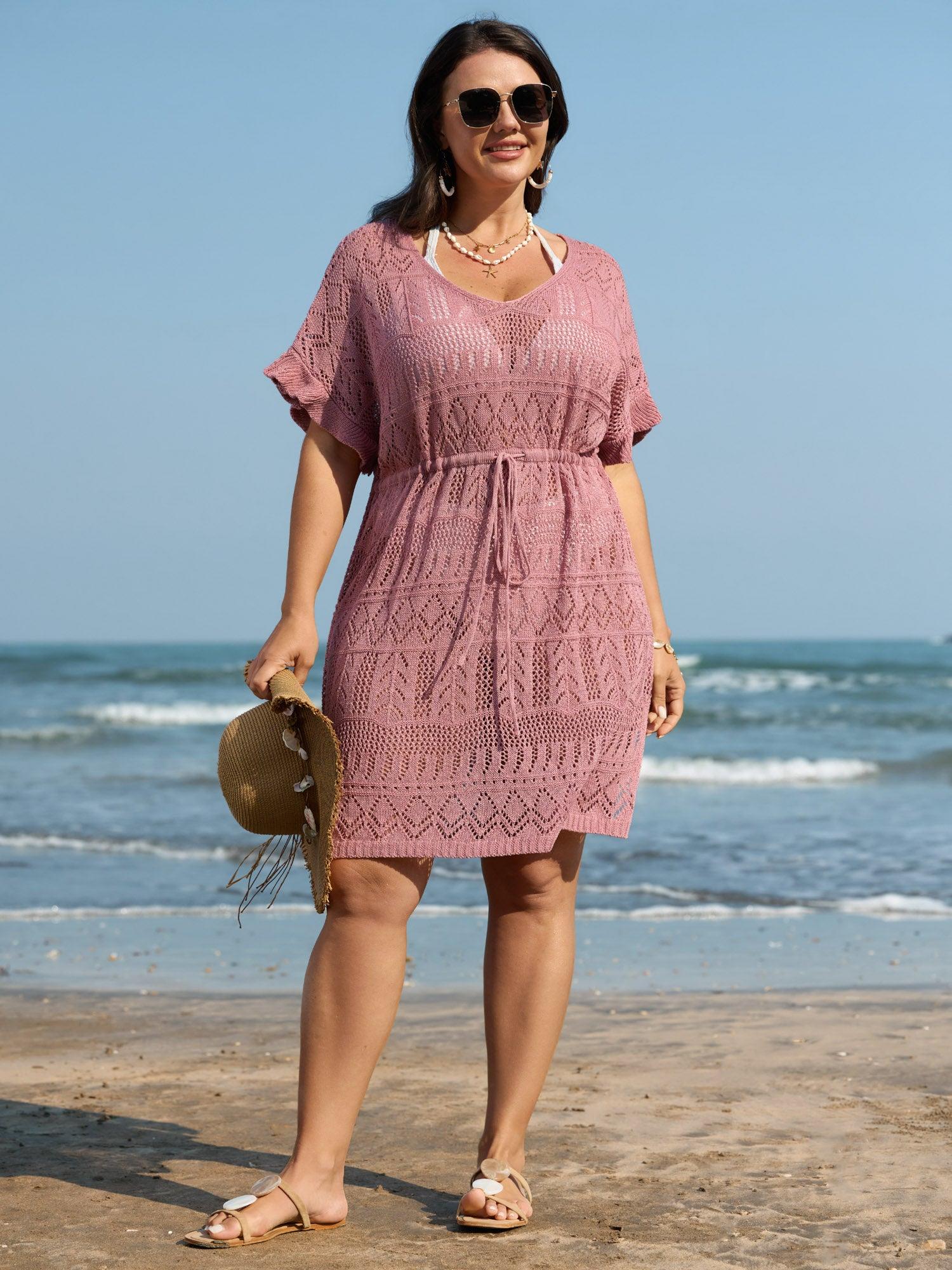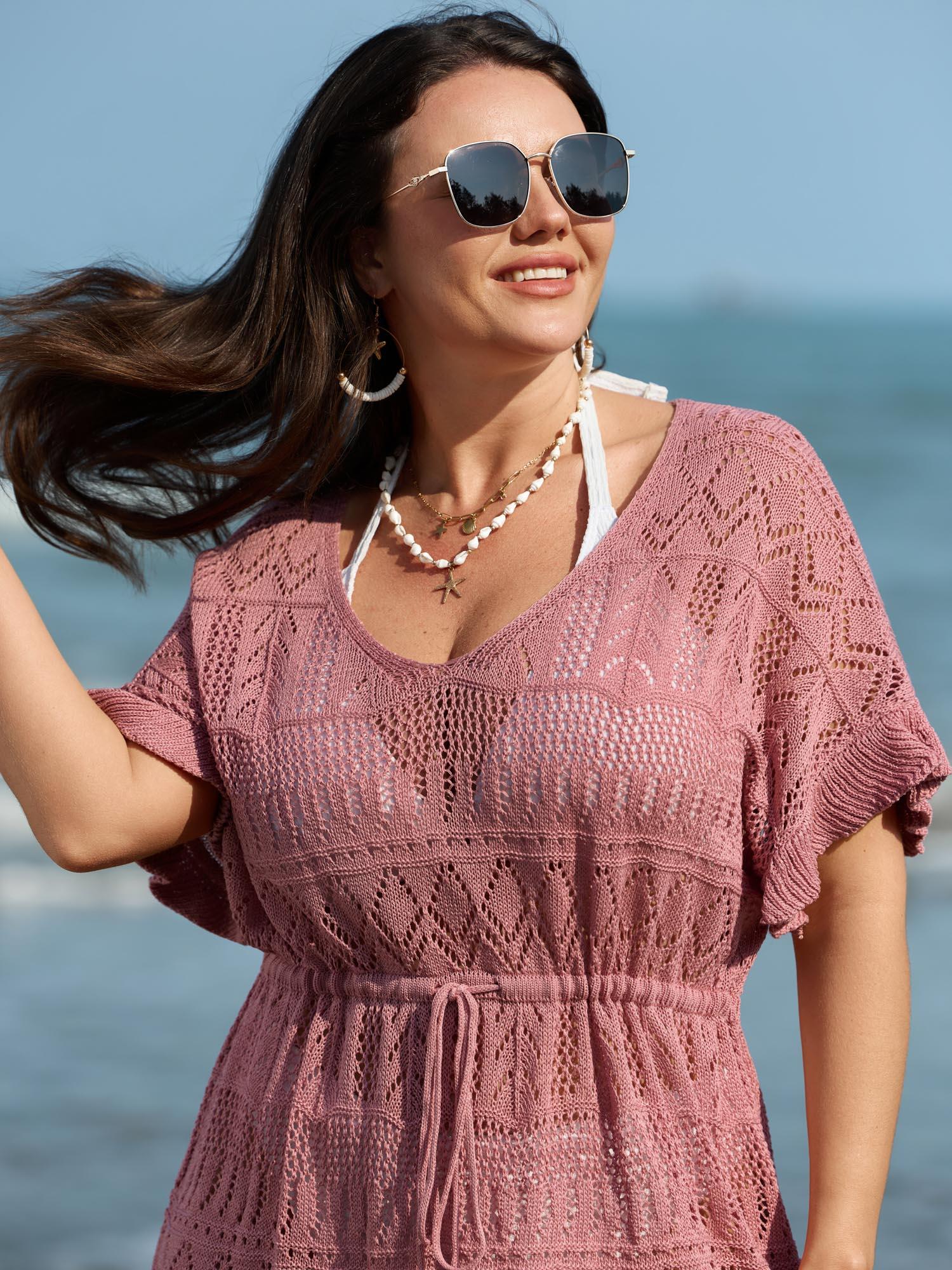 Shop Textured Cut-Out Drawstring Swim Cover-Up now and redefine your style with confidence at BloomChic. Tailored for mid and plus-size women. This trendy Swimwear Women, sizes 10-30. Color:Nude Pink;Style:Resort;Neckline:U-neck;Sleeve Type:Ruffle Sleeve;Prints:Non;Details:Texture, Cut-Out, Ruffles;Pocket:No-pocket;Belt:No-belt;Chest pad:No-chest pad;Lining:No-lining;Closure Type:Non;Swimsuit types:Pullover Cover-Ups